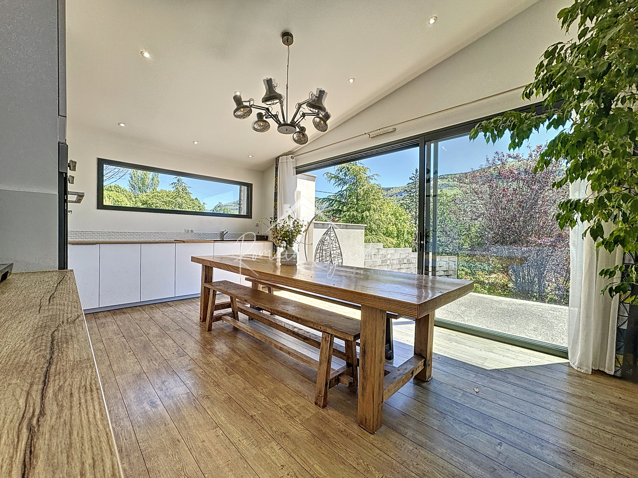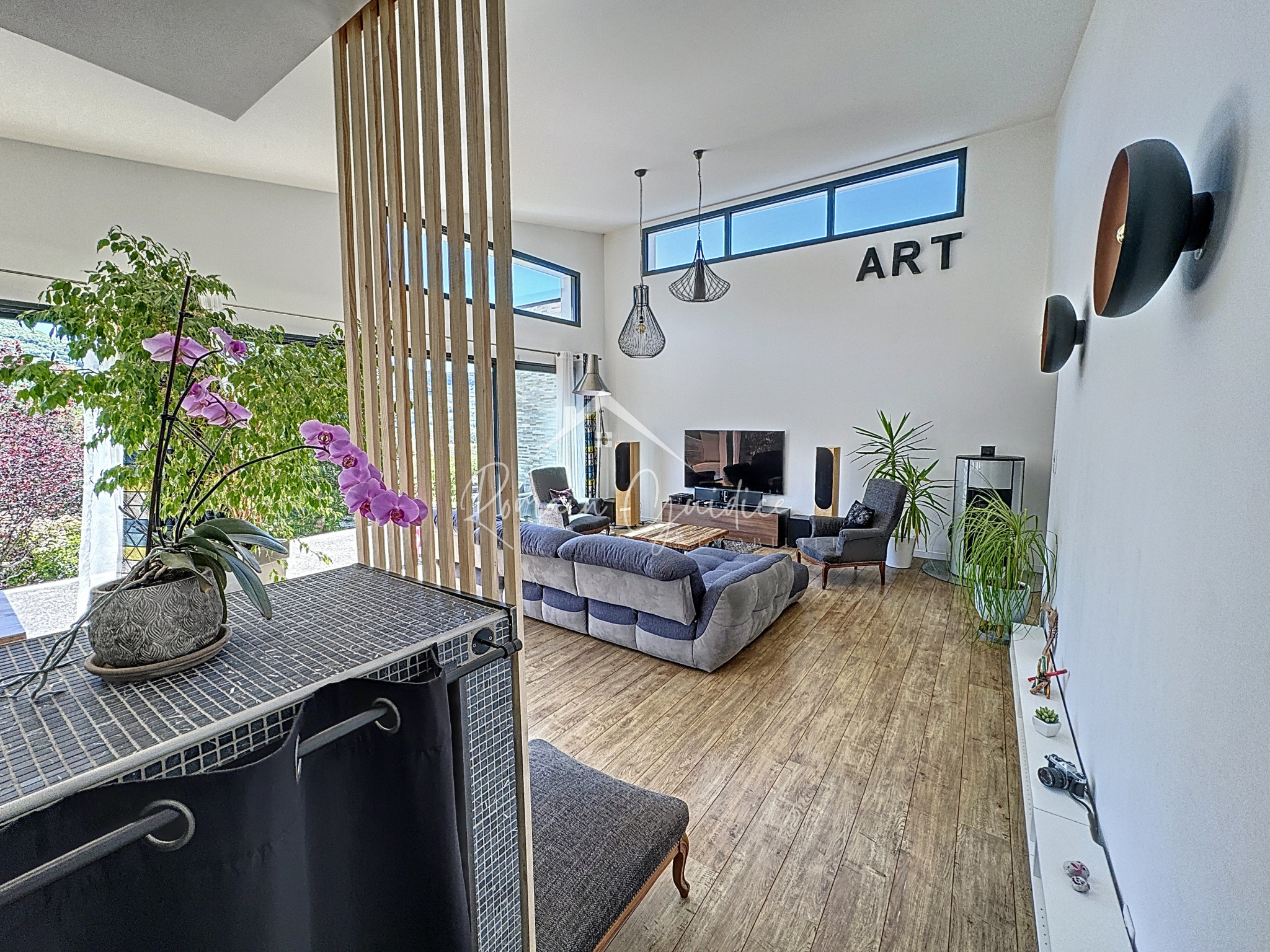 Vous serez conquis par les volumes et le côté atypique de cette villa composée d'une pièce de jour / cuisine ouverte de 54 m² avec accès terrasse et superbe vue sur la Puncho d'Agast à travers les 9 m linéaires de baies à galandage !