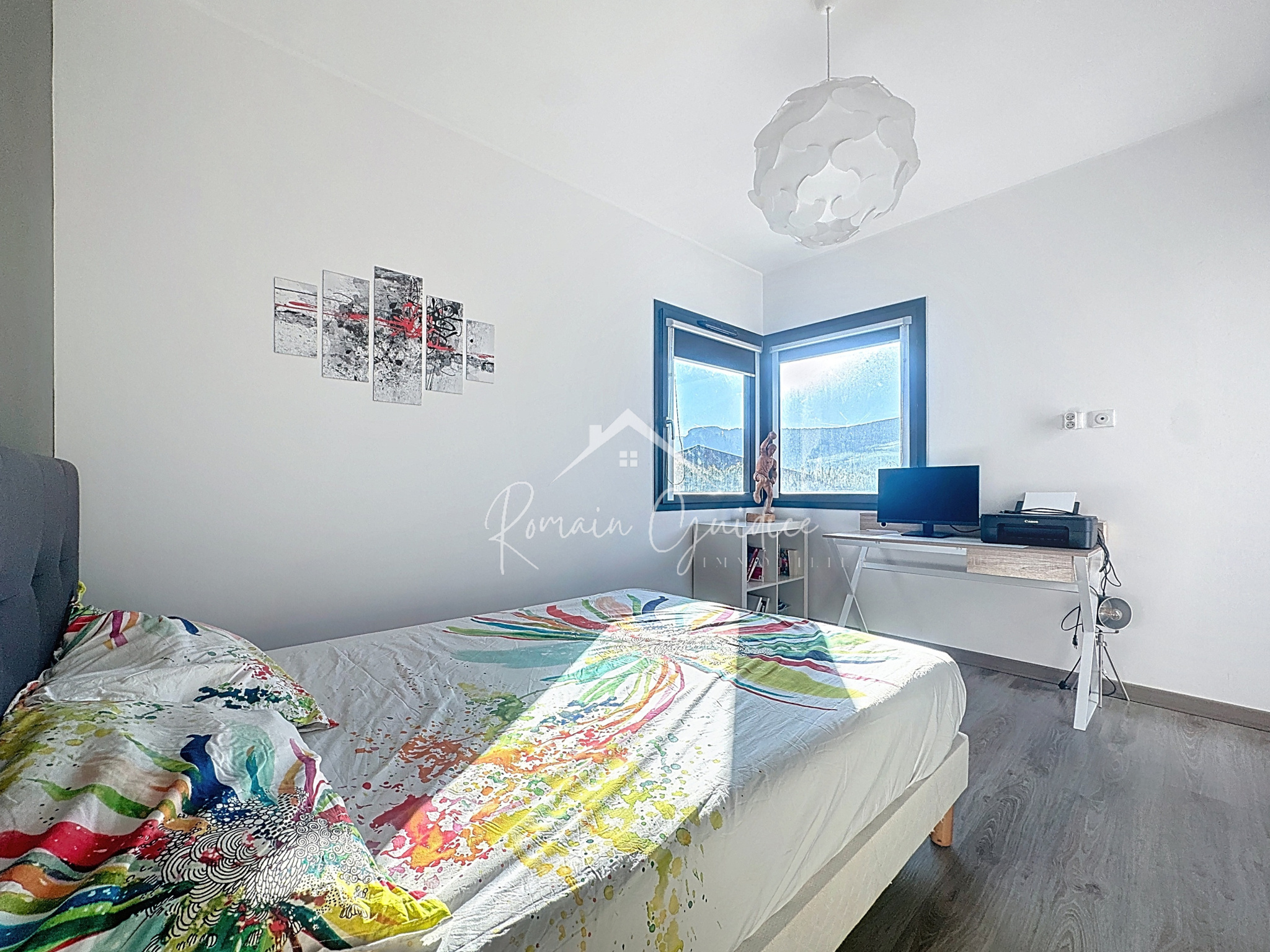 À l’étage, autour d’une mezzanine du plus bel effet, se déploie l’espace nuit : 4 chambres toutes équipées de placards intégrés (8,95 m², 9,92 m², 9,89 m² et 10,15 m²), un bureau ouvert (fermeture possible, idéal aussi en salle de jeux, coin lecture ou TV) et une salle d’eau.