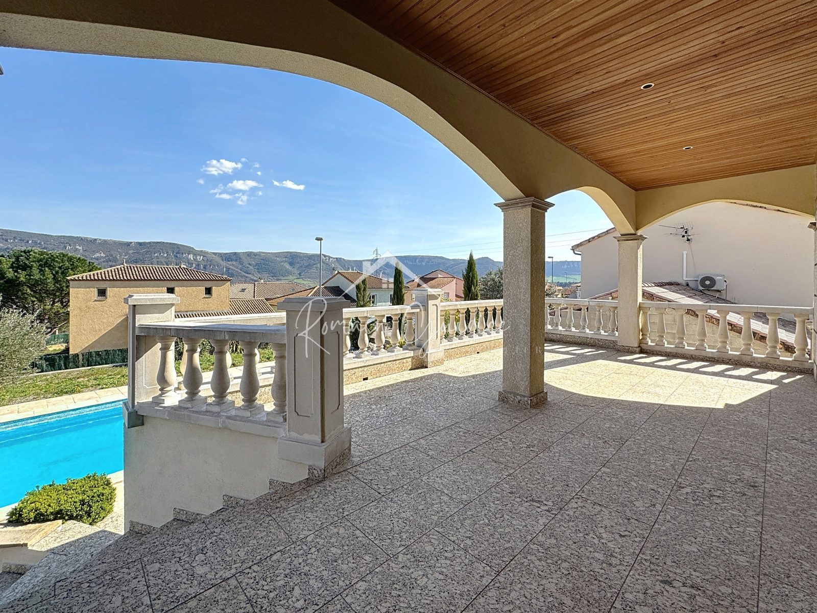 Dès l’entrée, vous serez charmé par une vaste pièce de vie de 44,80 m², baignée de lumière, qui s’ouvre sur une terrasse couverte offrant une superbe vue dominante sur l’espace piscine et une perspective dégagée sur le viaduc. Un cadre idéal pour profiter de moments conviviaux en famille ou entre amis.