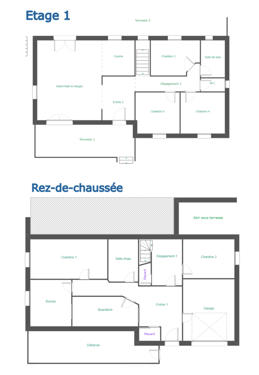 • Deux chambres supplémentaires (12,10 m² et 11,40 m², cette dernière étant actuellement aménagée en bureau)