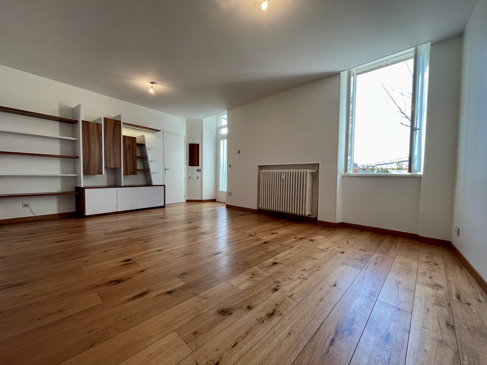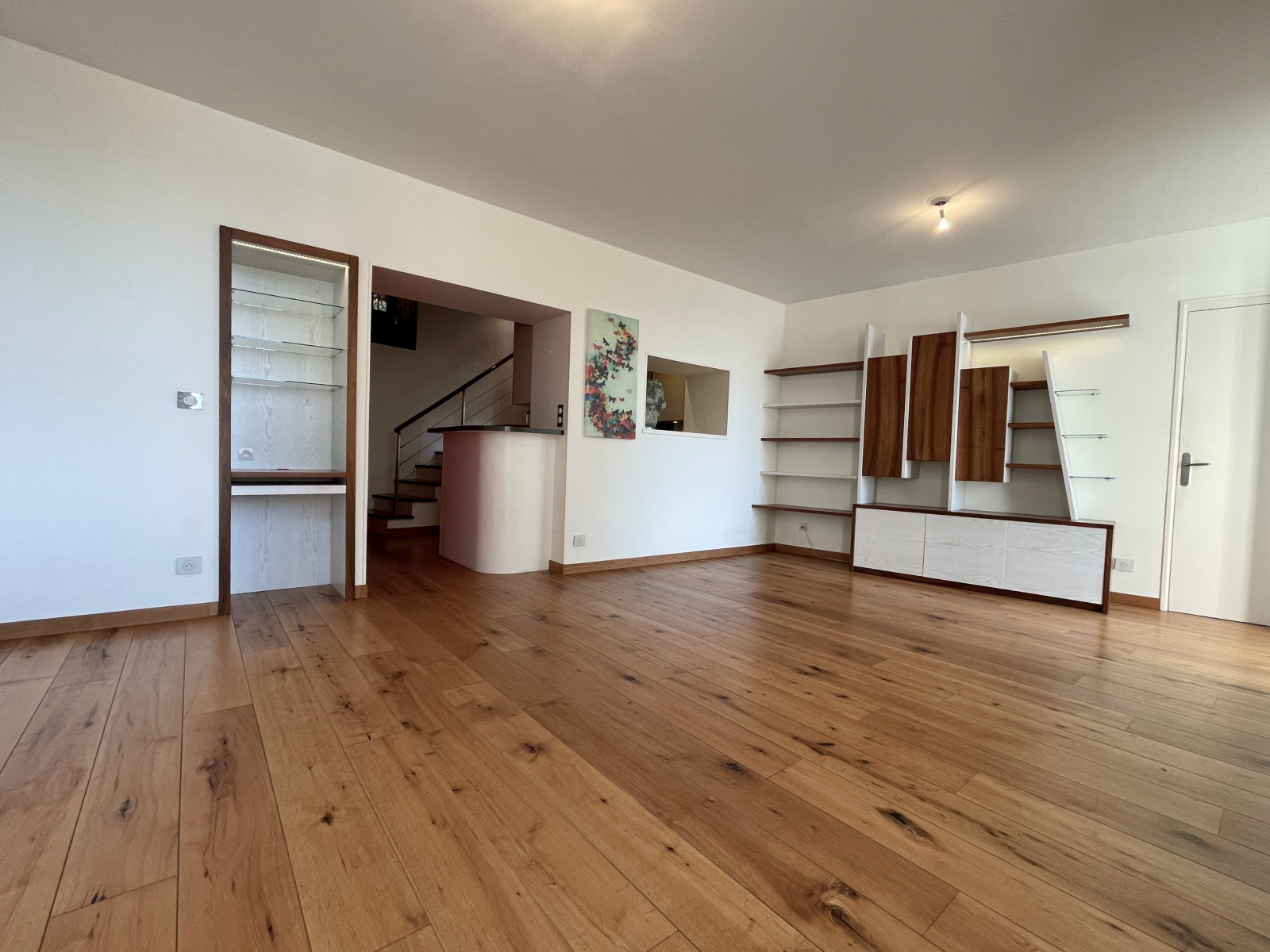 - Pièce de vie lumineuse (24 m2), avec un superbe parquet chêne, et des meubles en noyer massif sur-mesure - accès sur la terrasse
