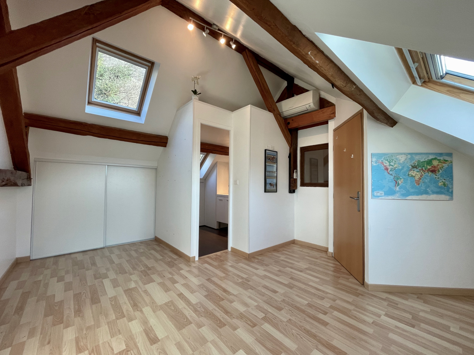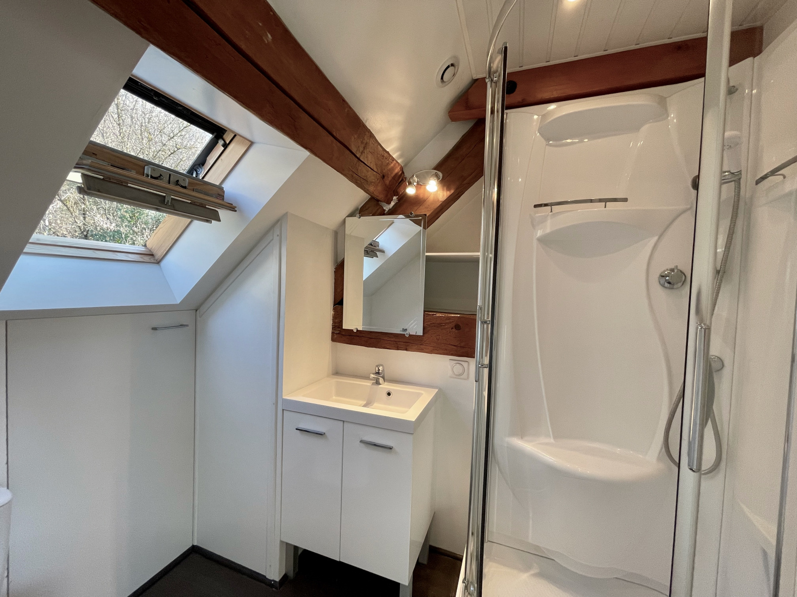 - Suite parentale, très lumineuse, traversante, avec sa salle de bain avec douche et wc - charpente apparente - climatisation réversible (13,6 m2 plancher - 9 m2 carrez)