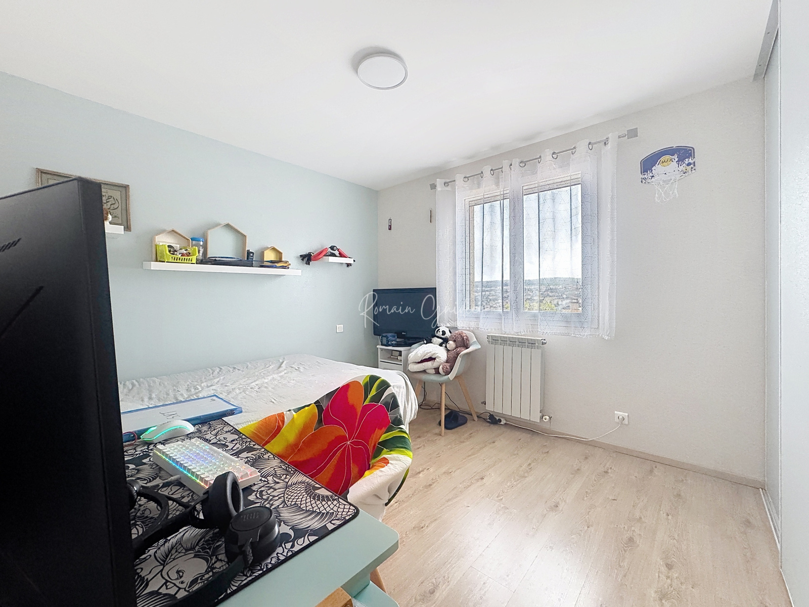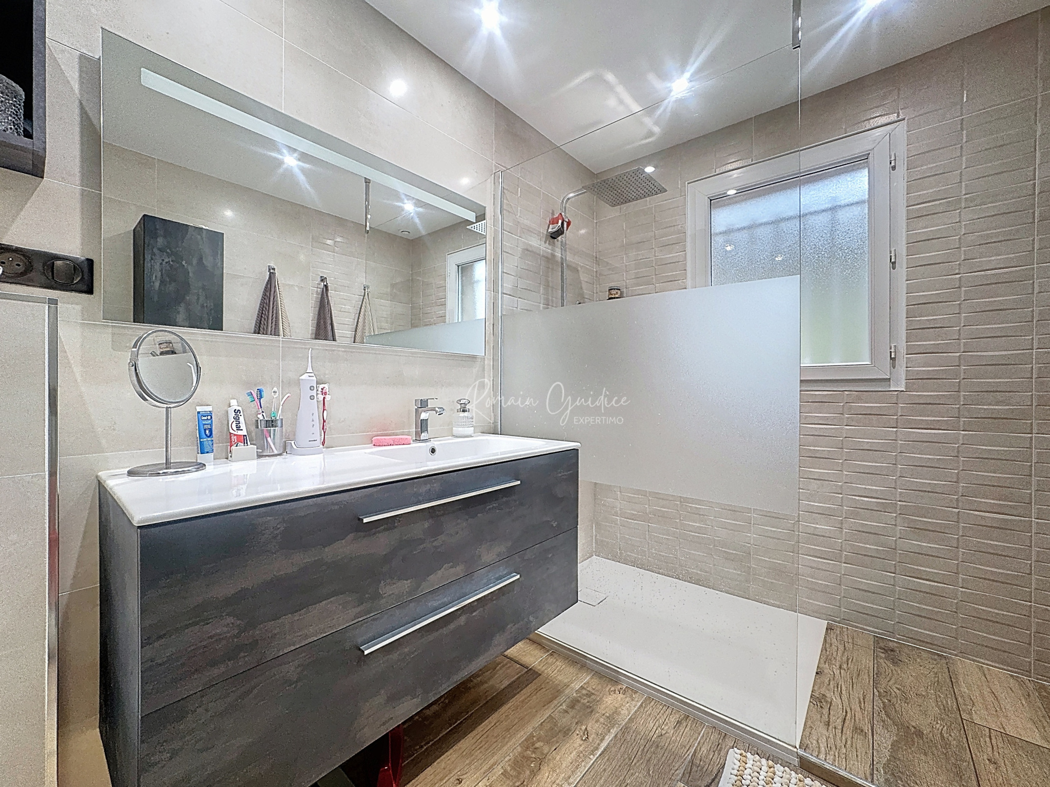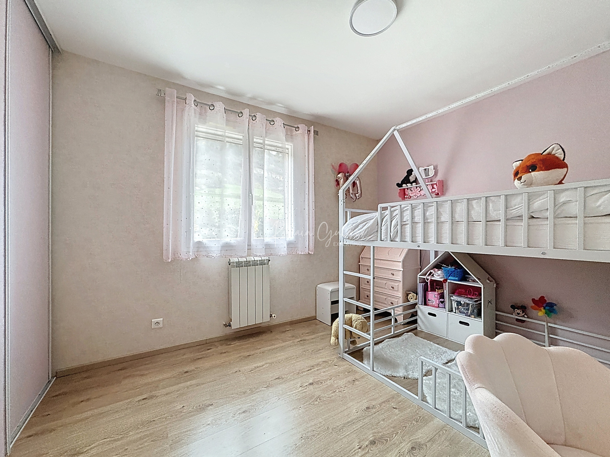 À l’étage, le coin nuit se compose de trois chambres confortables (deux de 11,08 m² et une de 12,02 m²), toutes équipées de placards intégrés. Une salle d’eau moderne de 5,80 m² complète ce niveau, avec WC, sèche-serviette et miroir chauffant.