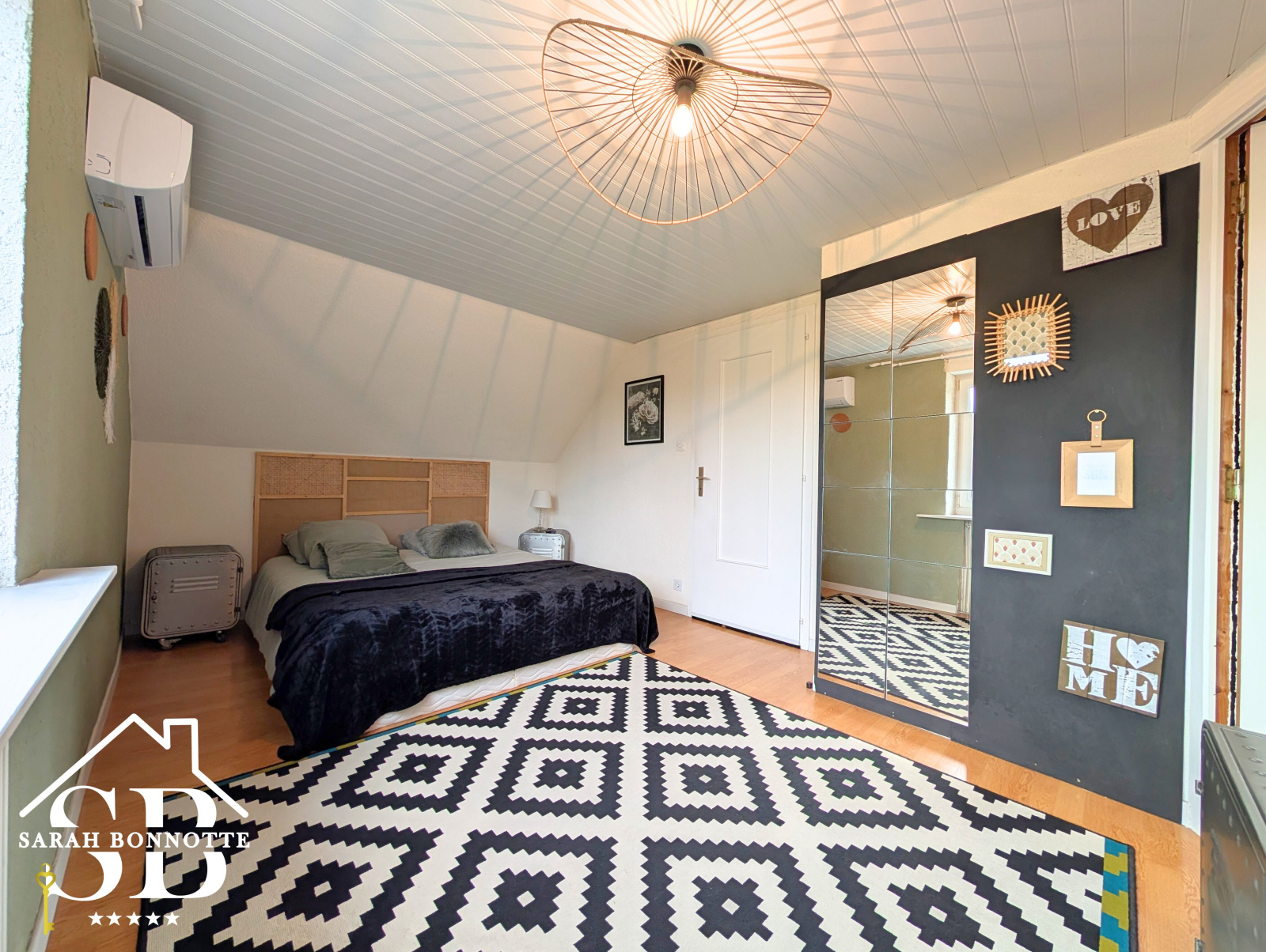 À l’étage, vous trouverez trois belles chambres, dont une suite parentale climatisée avec dressing attenant, garantissant confort et intimité ainsi qu’un second WC avec lave-mains facilitant la vie quotidienne.