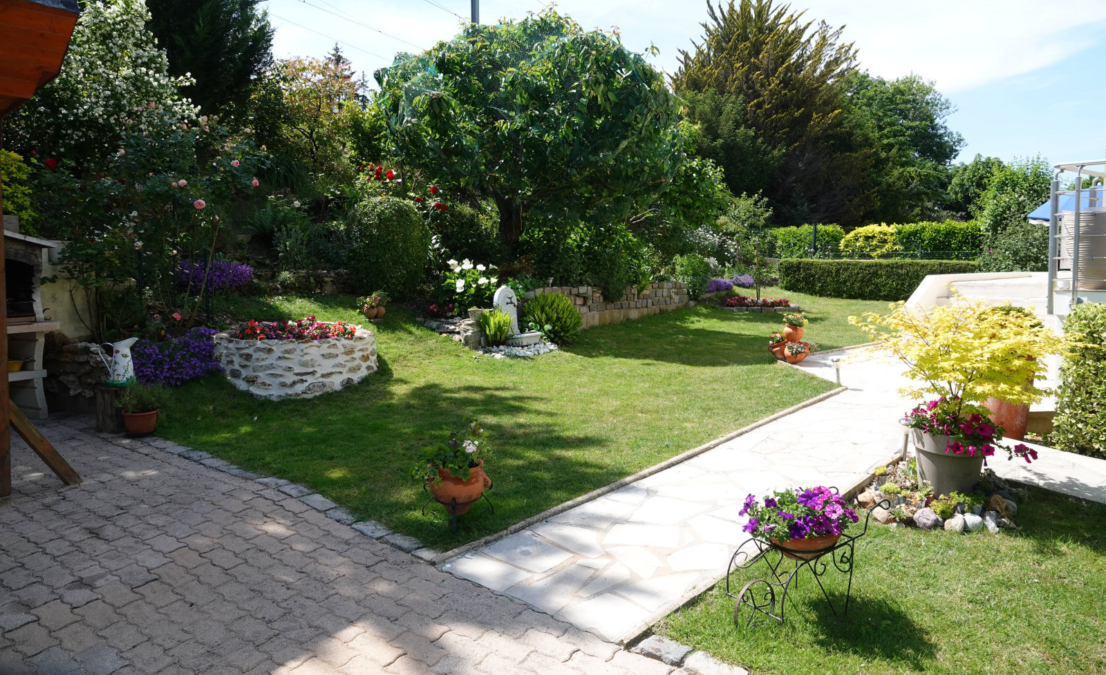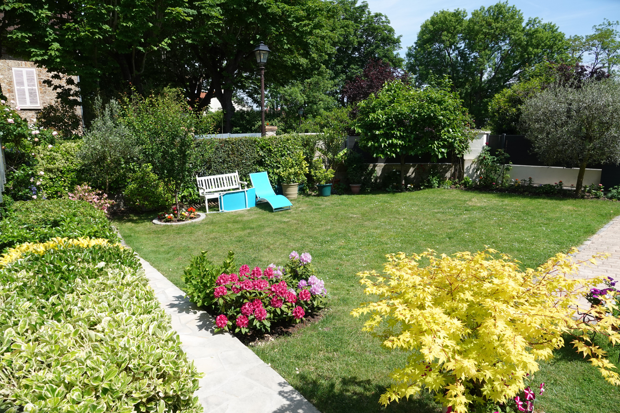 5mn à pied de la Gare de Louveciennes . Au calme dans petite ruelle verdoyante. Maison de 135m² plus surface sous pentes avec extension récente et pièce aménageable de 37 m² 1 chambre en rez de chaussez salle de douche et WC indépendant . Trois autres chambres au premier étage.une seconde salle de bains et douche , un WC au premier . Avec garage et magnifique jardin paysagé et fleuri de 515 m² . Triple exposition séjour cuisine 53 m² avec ouverture fenêtre à galandage sur terrasse filante.Double garage , chaudière gaz et électricité récente. Le tout en parfait état . Aucun travaux nécessaire pour s’installer ; maison en excellent état .Un espace protégé au jardin pour dejeûner à l’ombre . A voir absolument .
