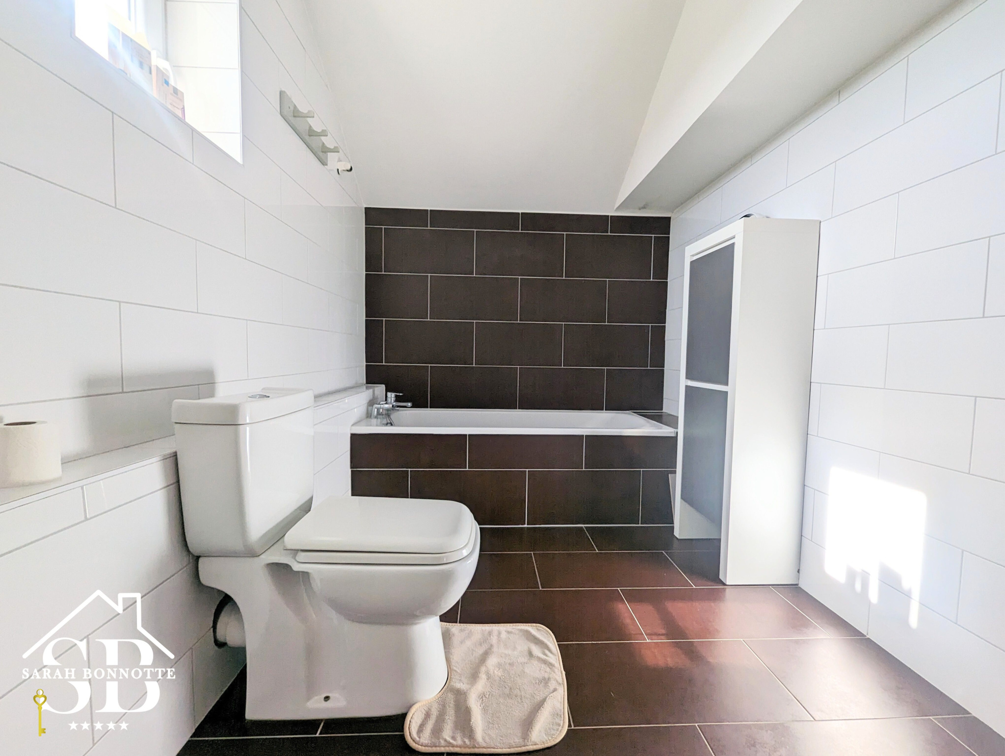 Au 2ème étage, vous trouverez une QUATRIEME CHAMBRE de 14 m2, un espace de rangement en sus de 5 m2, et d'une salle de bain avec meuble vasque, BAIGNOIRE et wc.