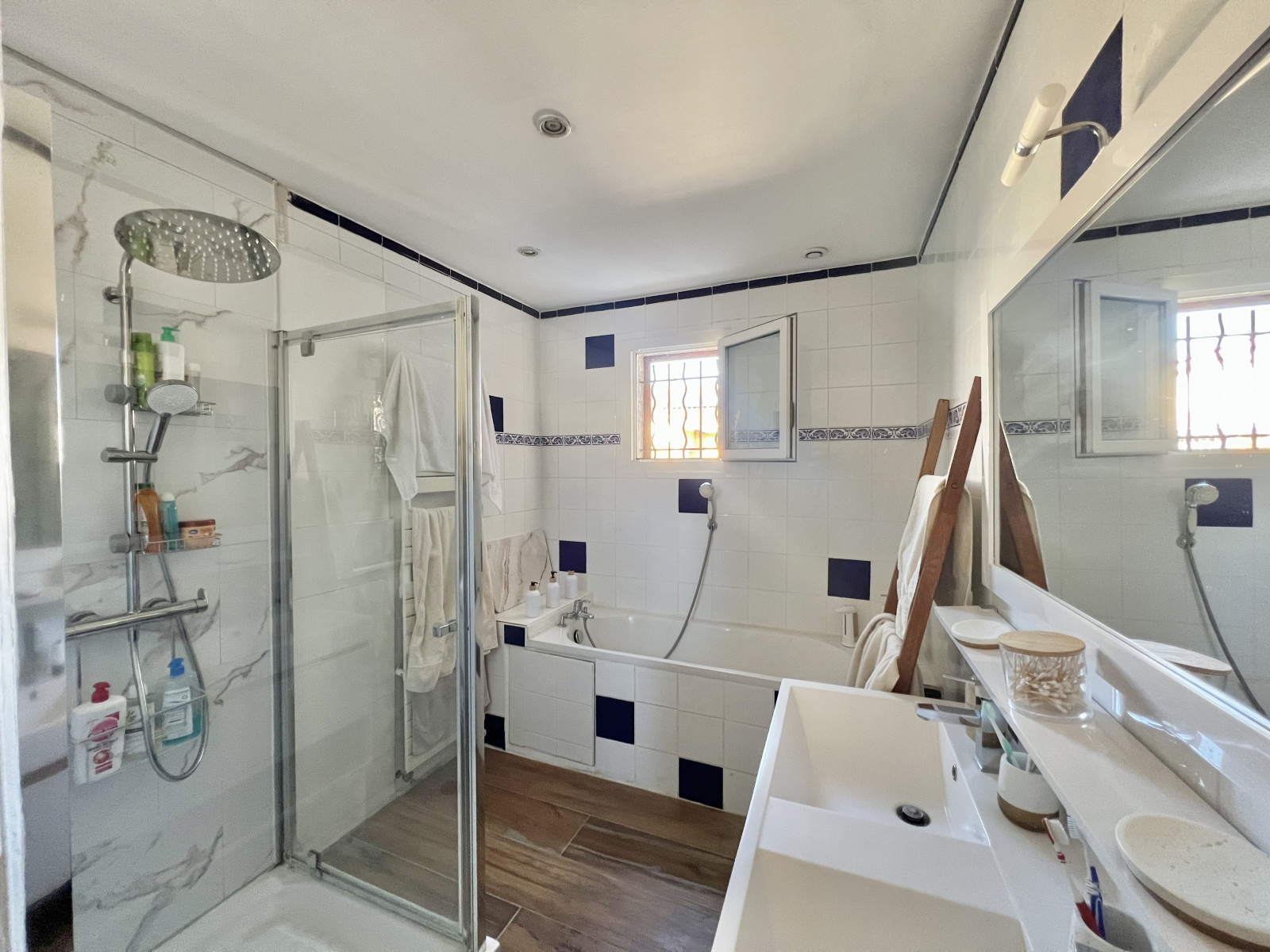 L’espace nuit intimiste, accueille trois chambres de dimensions confortables, ainsi qu’une salle d’eau avec douche et baignoire.