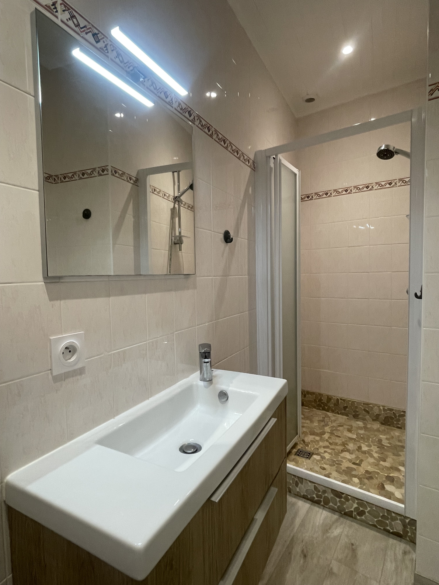 Salle d’eau avec douche, lavabo et WC