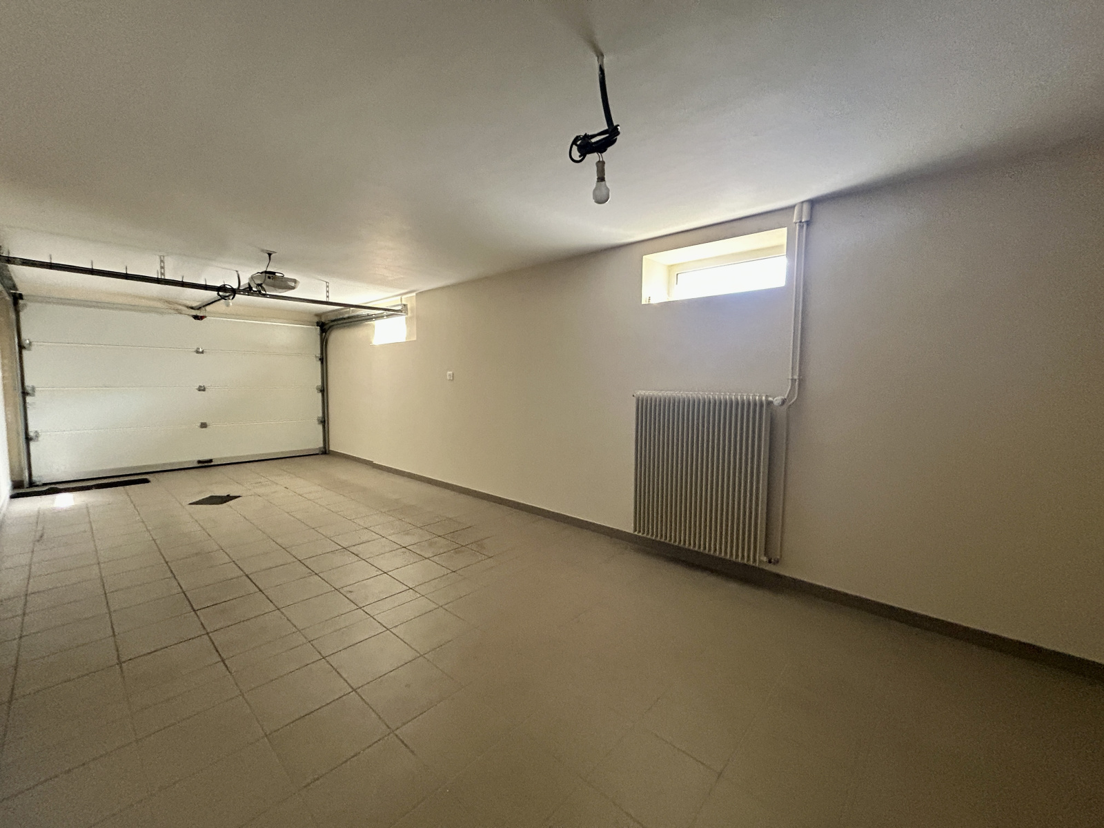 1 sous-sol total entièrement carrelé comprenant un double garage motorisé, une buanderie, une cave + rangements