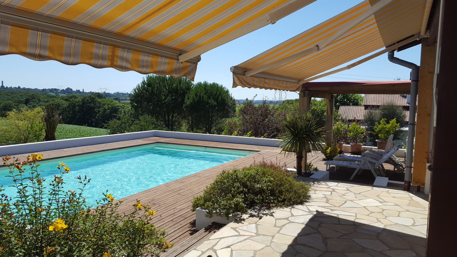 Une parcelle de 3000 m 2 environ au calme avec piscine de (9x5, chauffée) et vue sur les Pyrenées