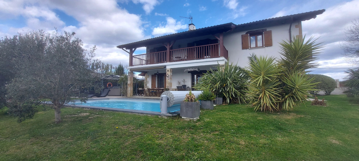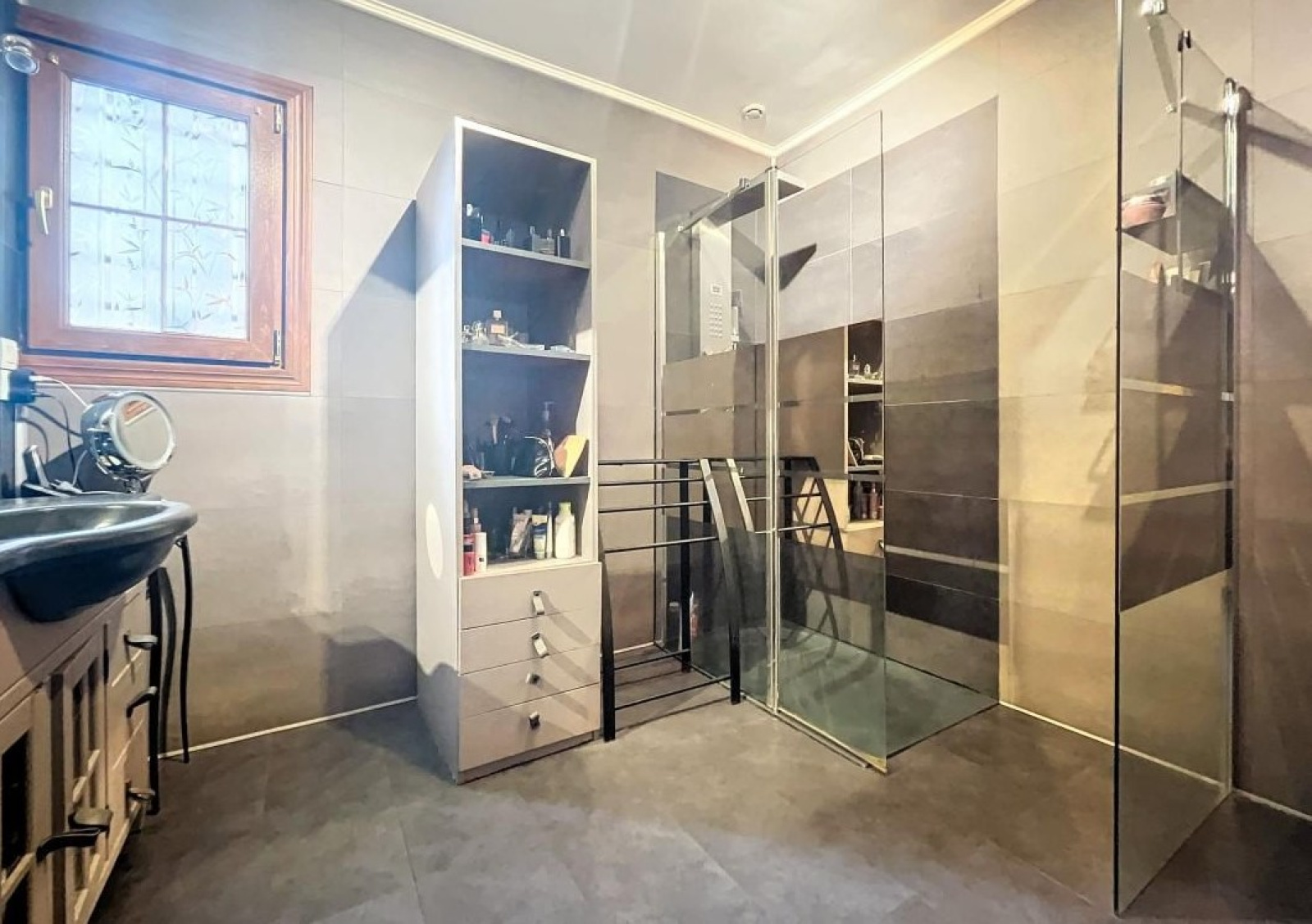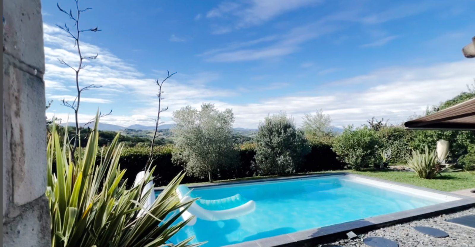 RC séjour de plus de 60m² donnant sur terrasse couverte de 22m² plein sud , vue montagne, une cuisine entièrement equipée, une chambre , une salle d'eau, un WC, une psicine 8x4 chauffée, un garage de 36m².