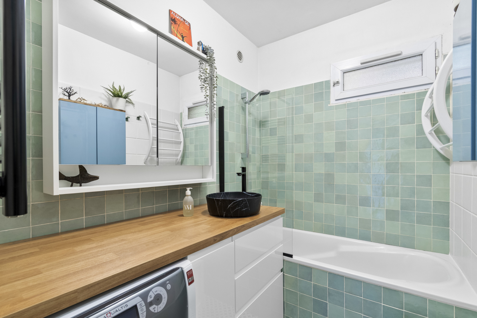 Traversant Est - Ouest, il dispose d'une entrée avec placards, d'un séjour d'envrion 21m² donnant sur le parc de la résidence, d'une cuisine américaine, de 2 chambres avec balcons, d'une salle de bains récente et de toilettes indépendantes.
