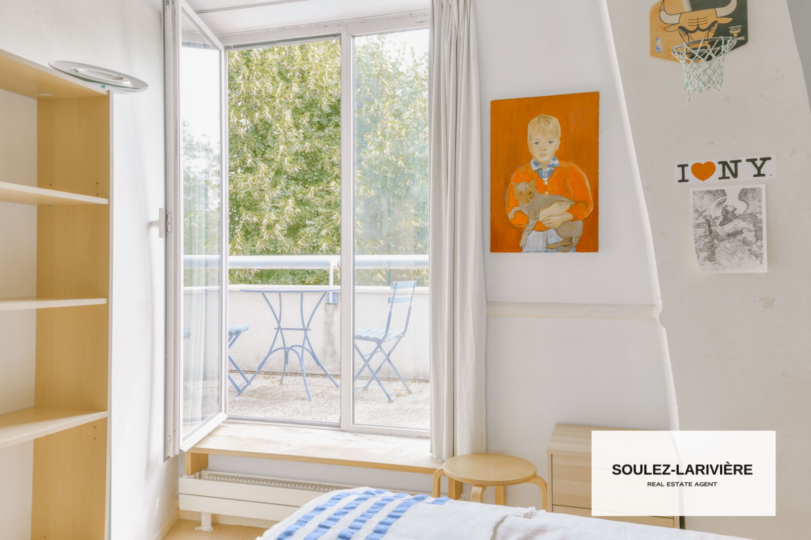 Au deuxième et dernier étage, une suite parentale avec une vue panoramique sur Paris composée d'un dressing et d'un bureau et un WC. Il est possible d'installer une salle de bains ou une salle d'eau sur ce niveau.