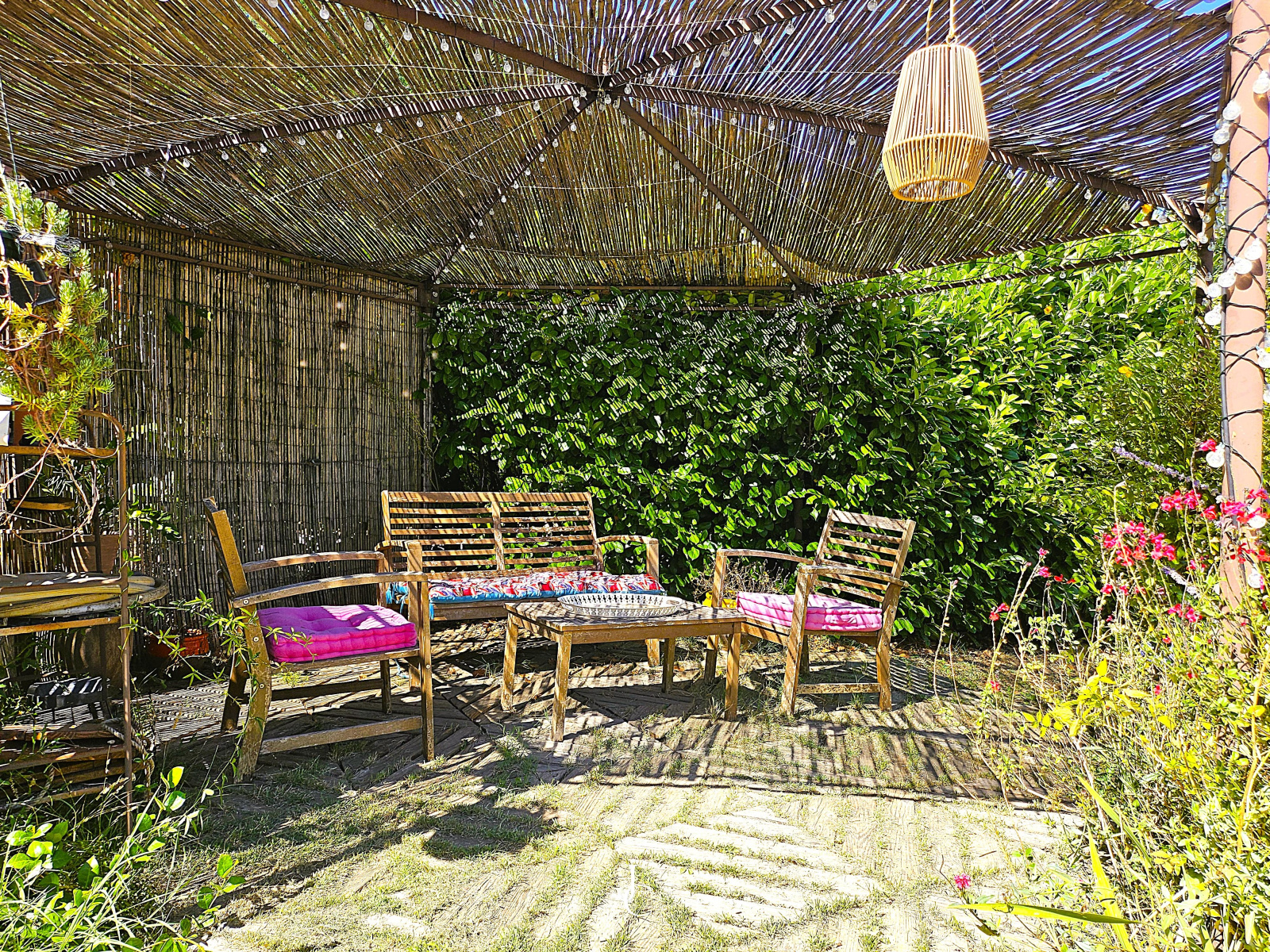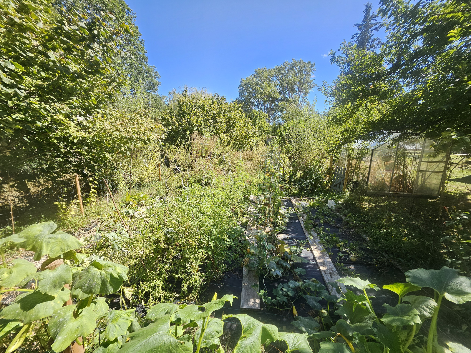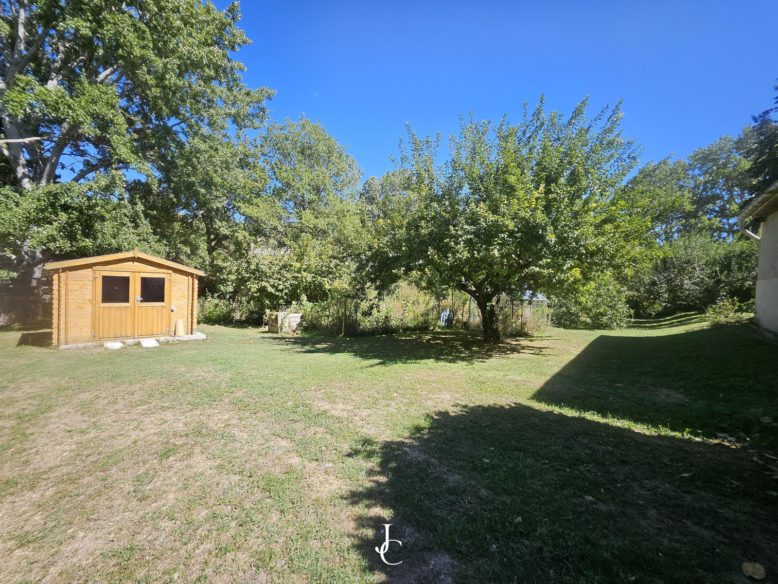 Le terrain de 3 180 m² constitue un véritable jardin de vie : une piscine pour la détente, un potager et une serre pour cultiver ses propres récoltes, ainsi qu’un chalet qui ouvre de multiples possibilités d’usage. Un garage et un cellier viennent compléter l’ensemble.