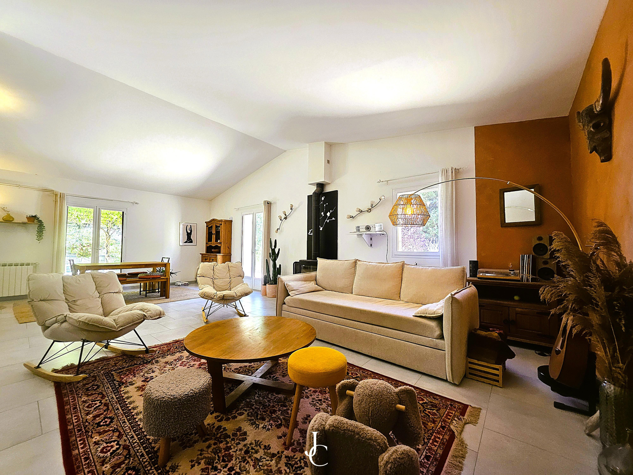 Les espaces intérieurs sont lumineux et agréablement agencés, avec de beaux volumes et quatre chambres offrant confort et convivialité. Chaque pièce a été pensée pour profiter de la lumière et du calme environnant.