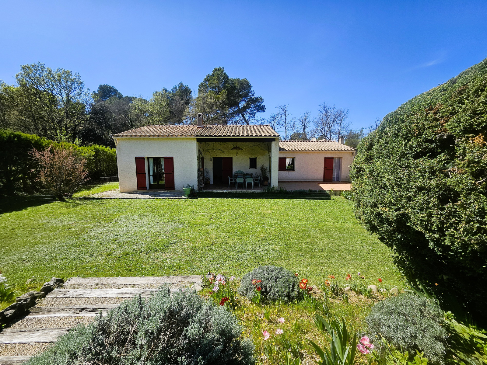 Exposée plein sud, la propriété bénéficie d’un bel ensoleillement tout au long de la journée et d’une vue dégagée, sans aucun vis-à -vis.