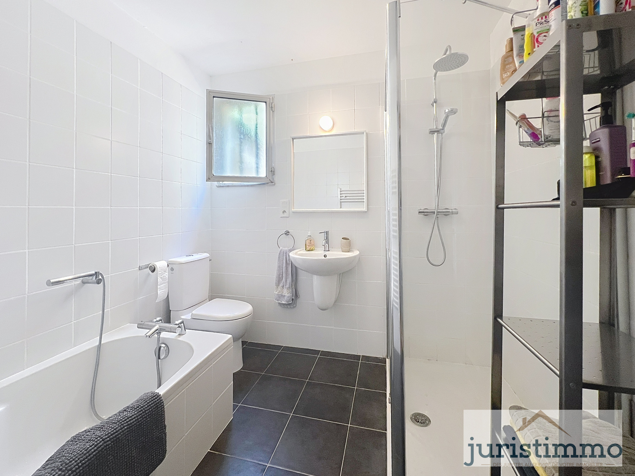 Une salle d’eau raffinée avec baignoire et douche
