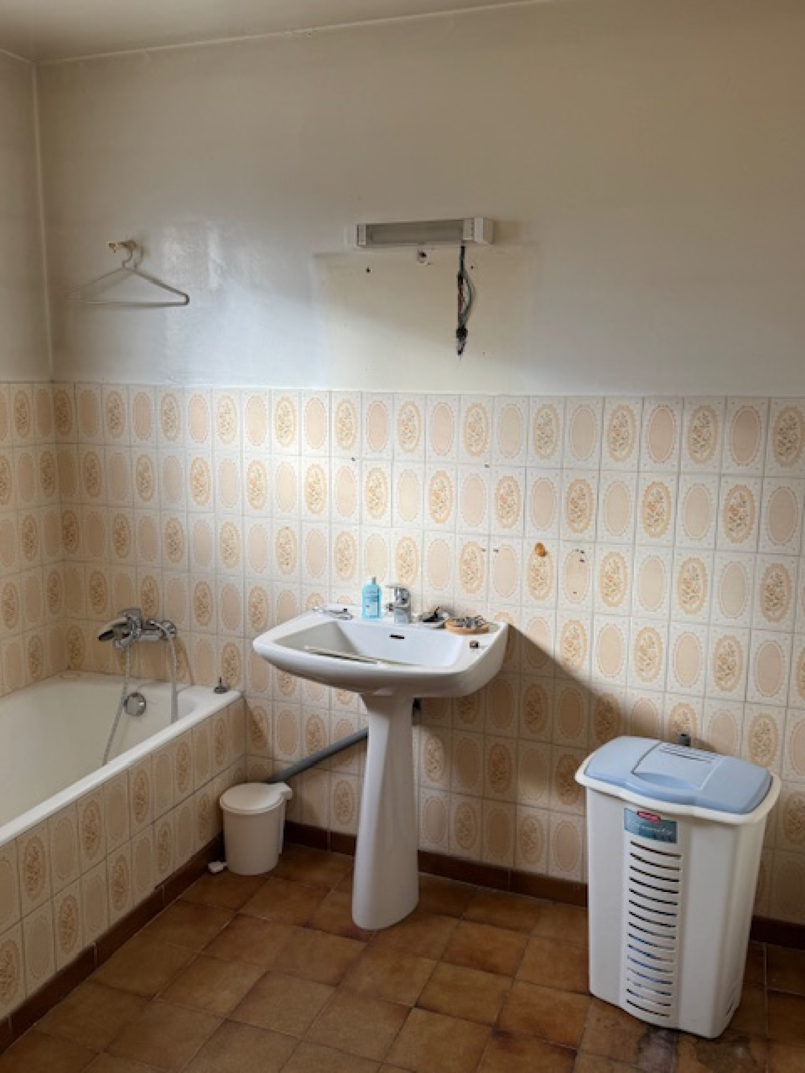Entrée, deux garages, dont un avec chaufferie, espace cave , escalier d’accès au premier étage -