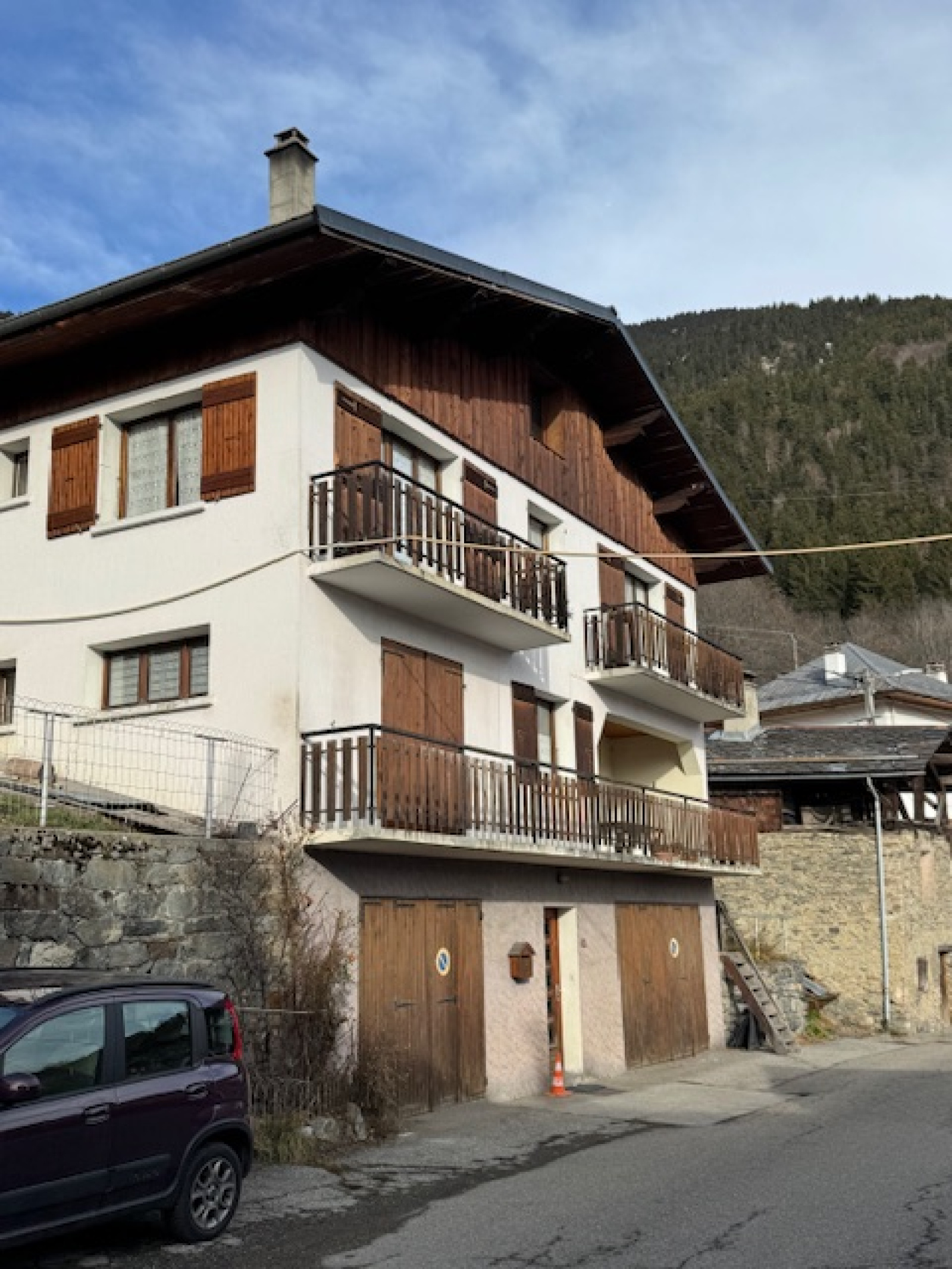 Dans la jolie commune (de 4 villages) de MONTAGNY 73350, versant sud, avec vues magistrales non loin des TROIS VALLEES et LA PLAGNE PARADISKI accès par Champagny en Vanoise, Maison non mitoyenne et grange (mitoyenne des deux côtés) le tout à réhabiliter - exposition Sud -