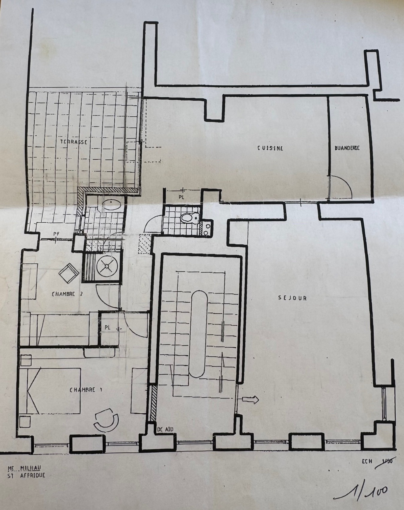 Au 2ème étage d'un immeuble en CV de St-Affrique, cet appartement T3 de 92 m² habitables bénéficie d'une grande terrasse de 38m2 avec store électrique.Dès l’entrée, vous serez séduit par ses beaux volumes et sa luminosité, grâce à une exposition sur 3 faces. L’espace de vie est agréable et convivial, avec une cuisine entièrement équipée. La climatisation réversible, installée dans le salon et dans la salle à manger/cuisine, garantit un confort optimal en toute saison. L’appartement est habitable immédiatement, seuls des travaux de rafraîchissement au niveau des plafonds sont à prévoir. L’atout majeur de ce bien reste sa superbe terrasse de 38 m², idéale pour profiter de l’extérieur en toute tranquillité. L’immeuble a fait l’objet de travaux récents avec une toiture refaite et une façade rénovée, et bénéficie de faibles charges de copropriété. La cage d’escalier est spacieuse et l'entrée de l'immeuble fermée.