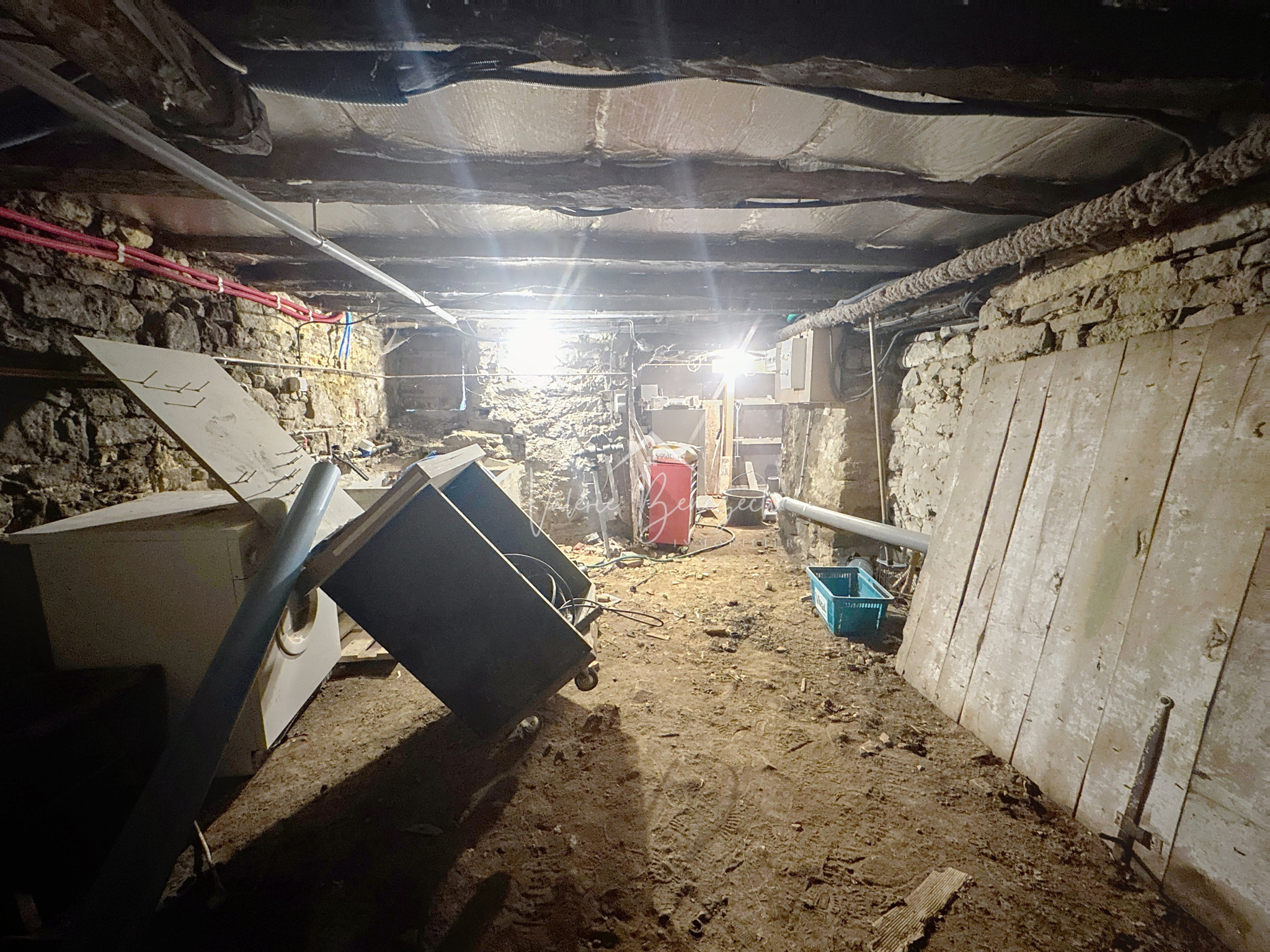 La maison dispose en sous-sol d’une chaufferie et de caves, et de l'autre côté de la maison un garage de 29m2 avec un toit à rénover. A quelques mètres, un terrain non attenant de 1 700 m² complète l’ensemble, idéal pour un jardin ou un espace détente.