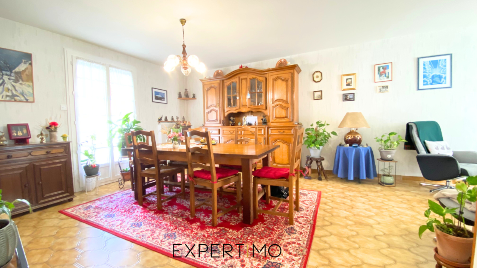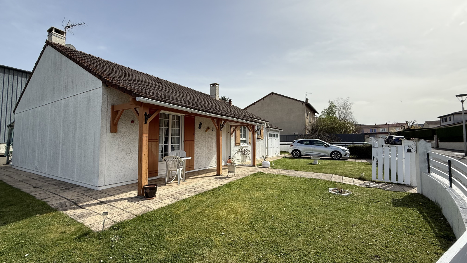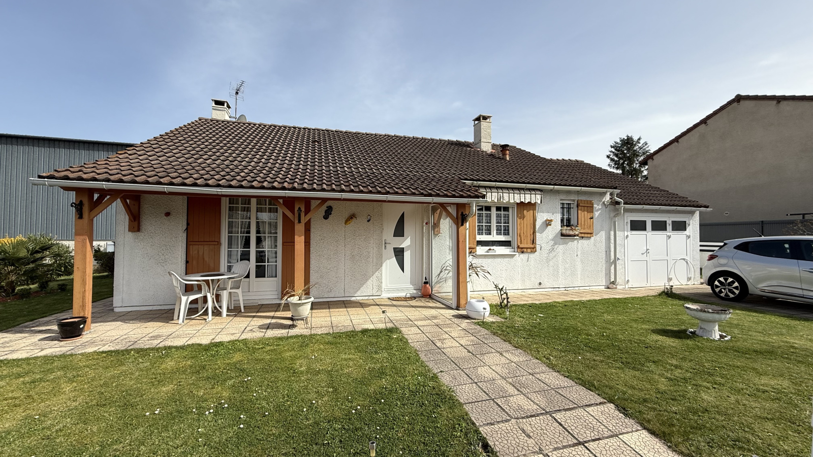 - 3 chambres, 1 bureau, séjour et salle à manger, cuisine équipée, salle d’eau, WC, et garage.