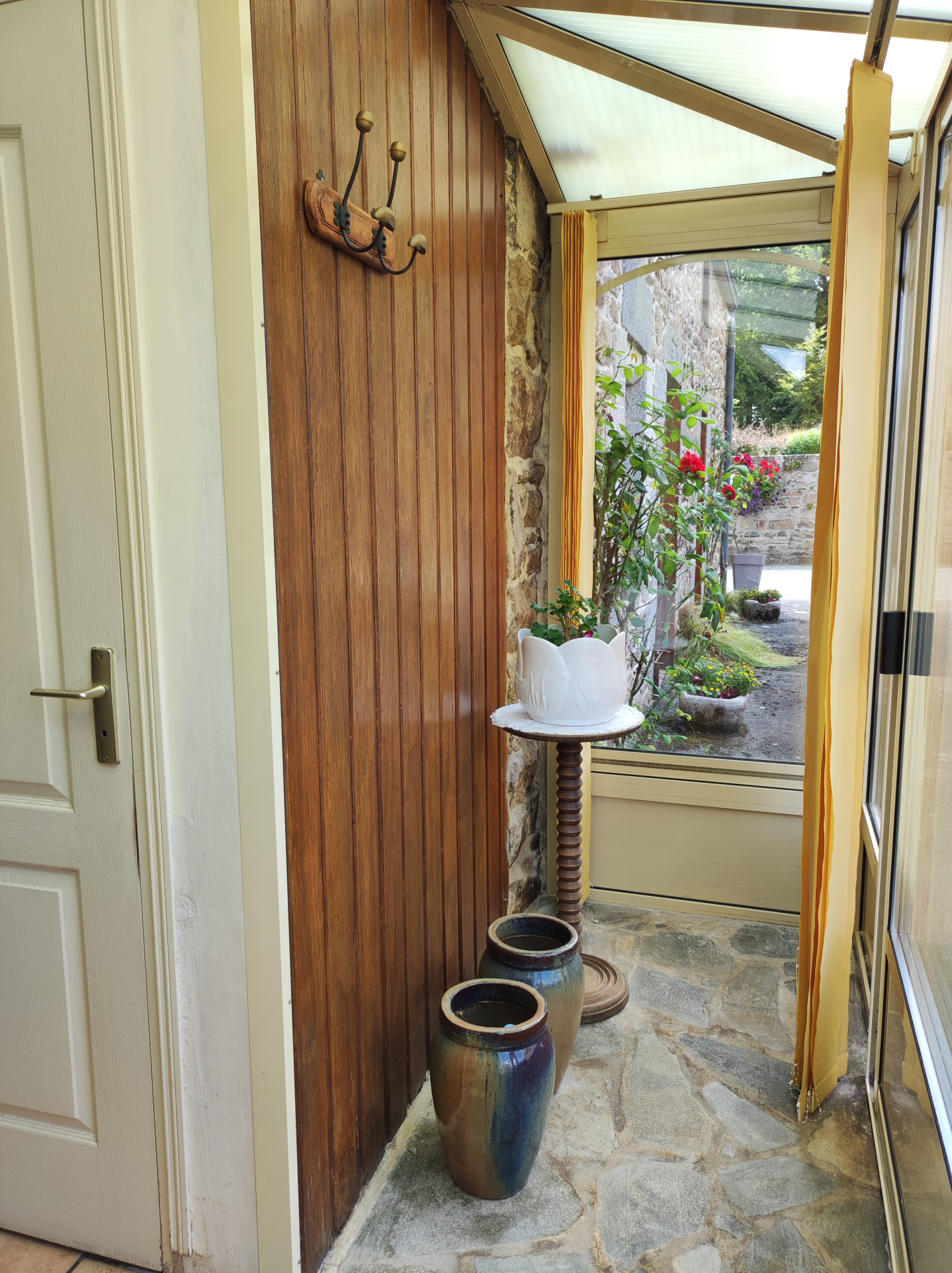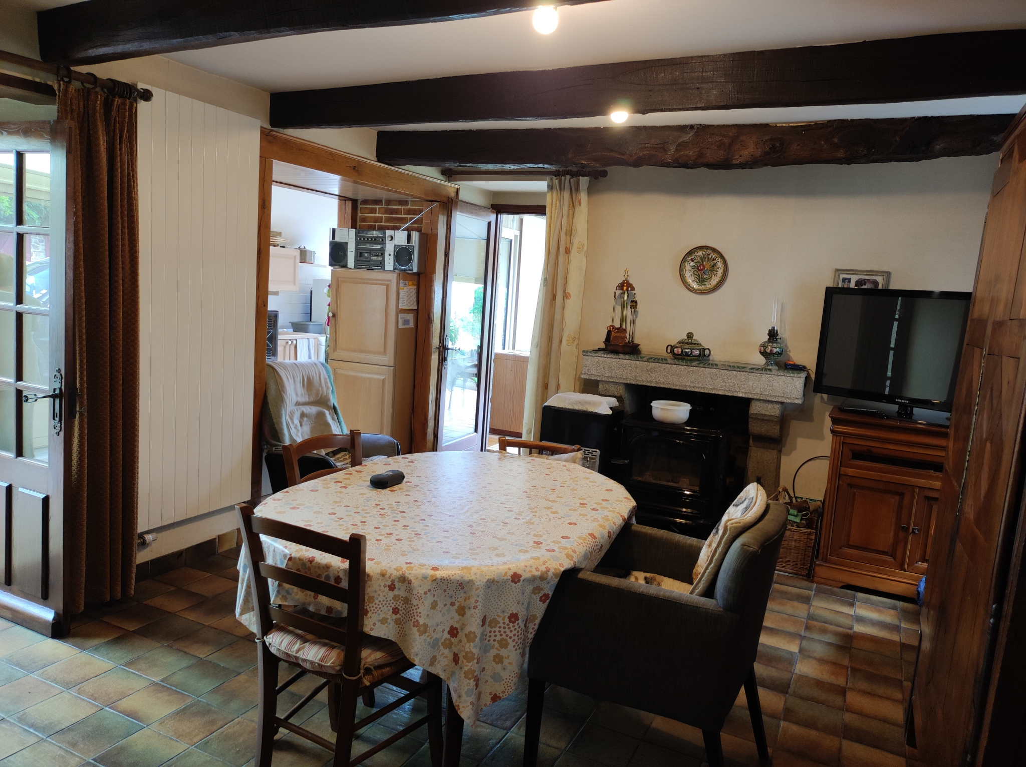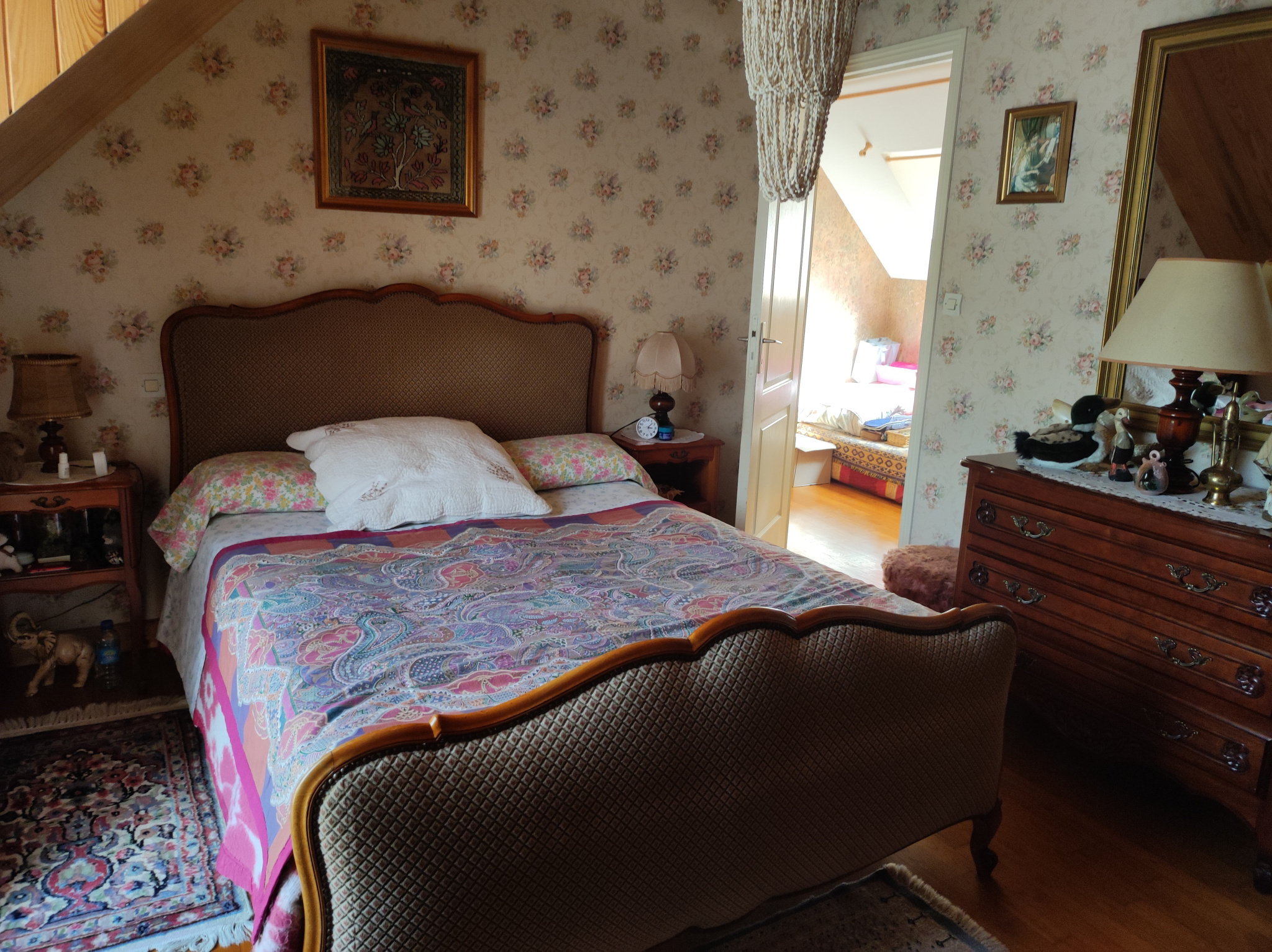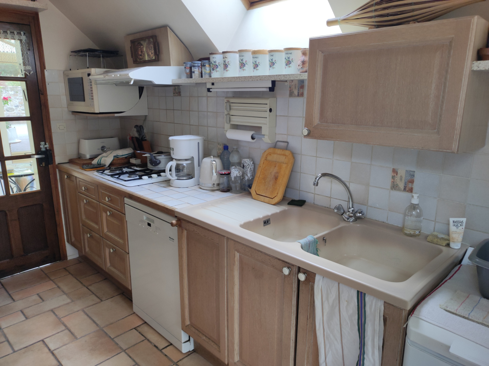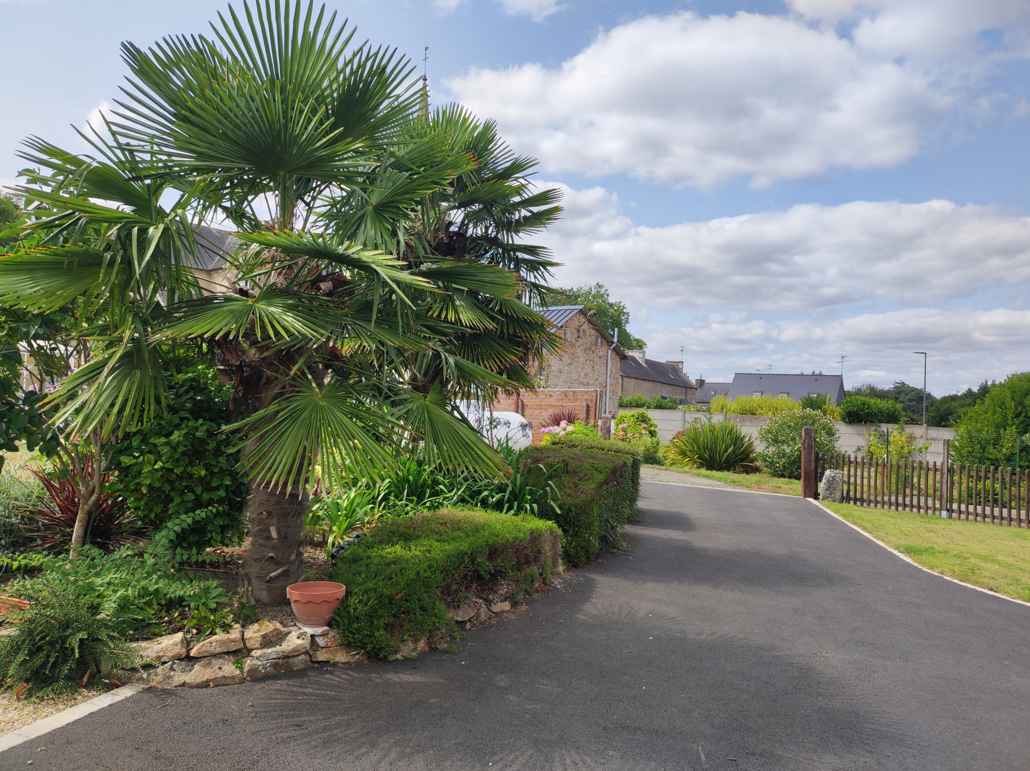 5 mn de CHATELAUDREN, : LONGERE en pierres sous ardoises composée au Rdc d'un sas d'entrée, un cuisine aménagée et équipée ouverte sur le séjour-salon, (poêle à bois, une véranda (salle à manger), un wc. A l'étage : un couloir desservant trois chambres dont une avec une salle de bains privative, placards, une salle d'eau, un wc. Terrain clôturé : 1600 m². Un abri de jardin en bois. Allées bitumées. Une serre. Un garage. Un grand garage (Possibilité camping-car). Fosse toutes eaux aux normes.