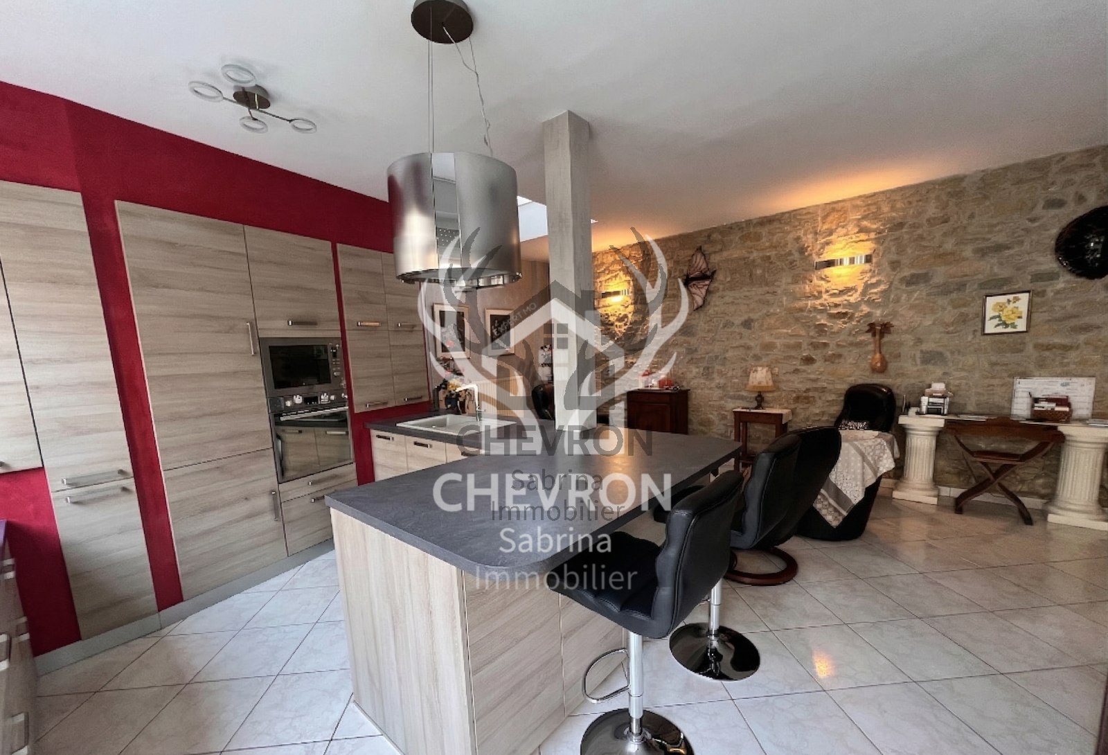 La cuisine ouverte s’intègre parfaitement à l’espace salon-séjour, créant une atmosphère conviviale et chaleureuse, avec un accès direct à une agréable terrasse, à l’abri des regards.