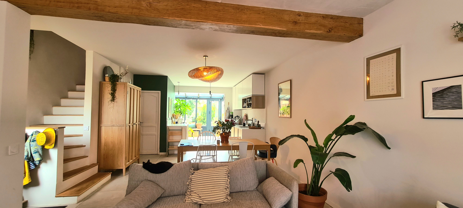 Champigny sur Marne - Parc du Tremblay : Limitrophe de Nogent-sur Marne et du Perreux, située au calme dans un quartier résidentiel et recherché, à 3mn à pied du Parc du Tremblay, nous vous proposons une charmante maison familiale mitoyenne, lumineuse orientée Sud, d’environ 114 m² habitable (125 m² au sol environ) sur deux niveaux, avec un sous-sol total.Elle est caractérisée par de très belles prestations, entièrement rénovée avec des matériaux de qualité par un architecte. Bâtie sur une parcelle d’environ 250 m², cette maison dispose d’un grand jardin ensolleillé à l'arrière parfaitement rectangulaire et aménagé.Elle se compose au rez-de chaussée d'une belle cuisine ouverte, d'un séjour- salle à manger prolongé par une grande véranda baignée de lumière avec accès direct au jardin, d'une salle de douche, wc. Un escalier mène au premier étage, où vous disposerez de 2 grandes chambres dont une équipée d'un beau dressing, d’une salle de bains, wc séparés.Au 2ème étage, combles parfaitement optimisés et aménagés, une chambre,un coin bureau.RER Nogent-Le Perreux et Champigny à 15 mn à pied, et proximité de l' A4. Honoraires 4% charge acquéreur (rsac 352137756 Paris)