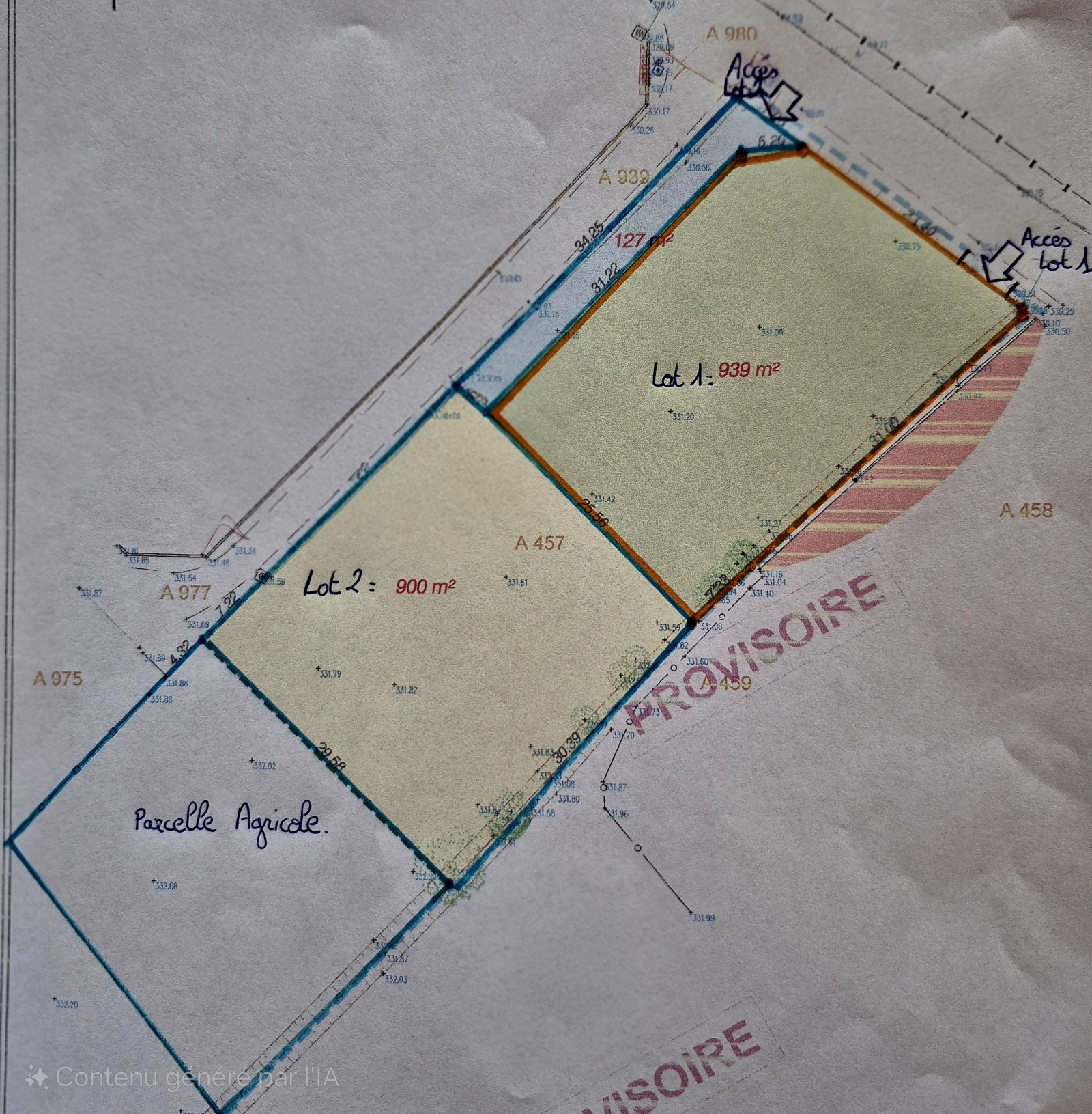 Sur la commune d'Ouillon, terrain à bâtir de 939 m2 constructibles (ce lot porte le n°1 sur le plan annexé).