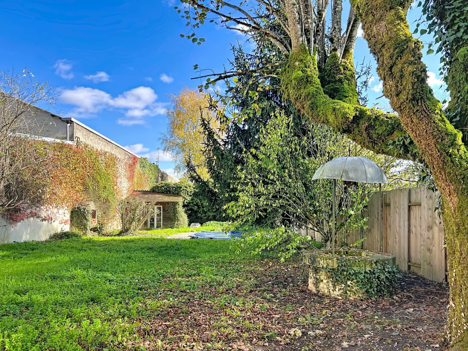 Accessible depuis la maison, le jardin clos d’environ 420 m² au calme : une terrasse près de la maison sous le tilleul, un puits en pierre, une piscine au chlore 6x4 mètres avec poolhouse, des lauriers roses et de nombreux arbustes fleuris.