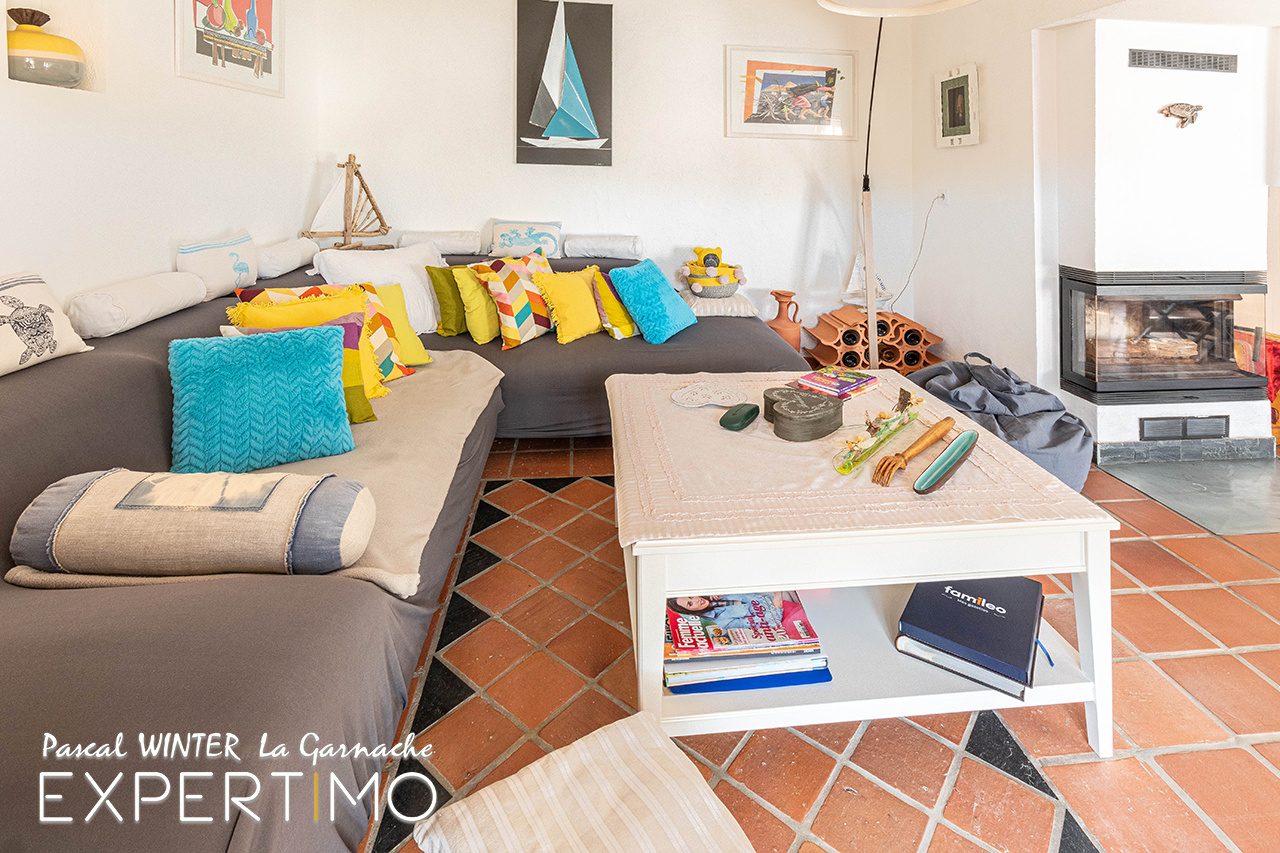 Un vaste salon séjour d'environ 56m² avec sa cheminée à insert et un sol entièrement rénové avec d'authentiques tomettes vous promet et garantit un ambiance saine et chaleureuse.