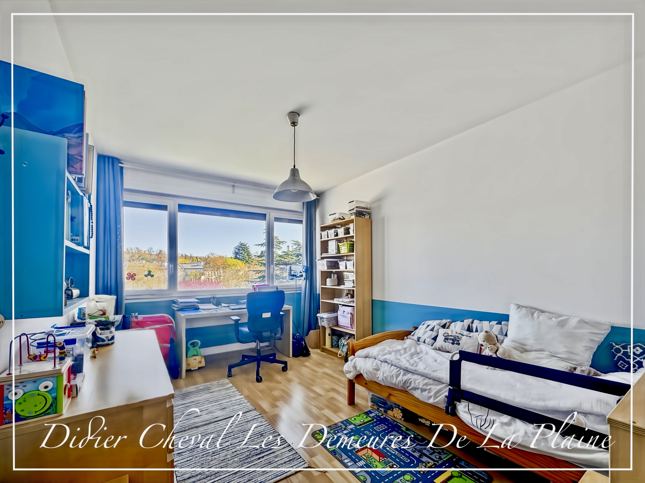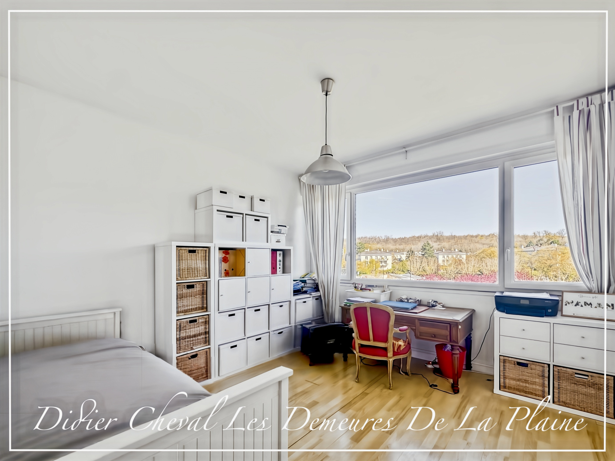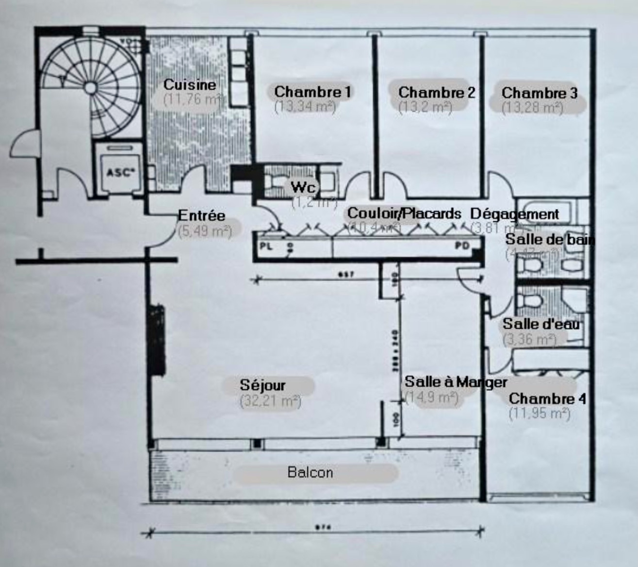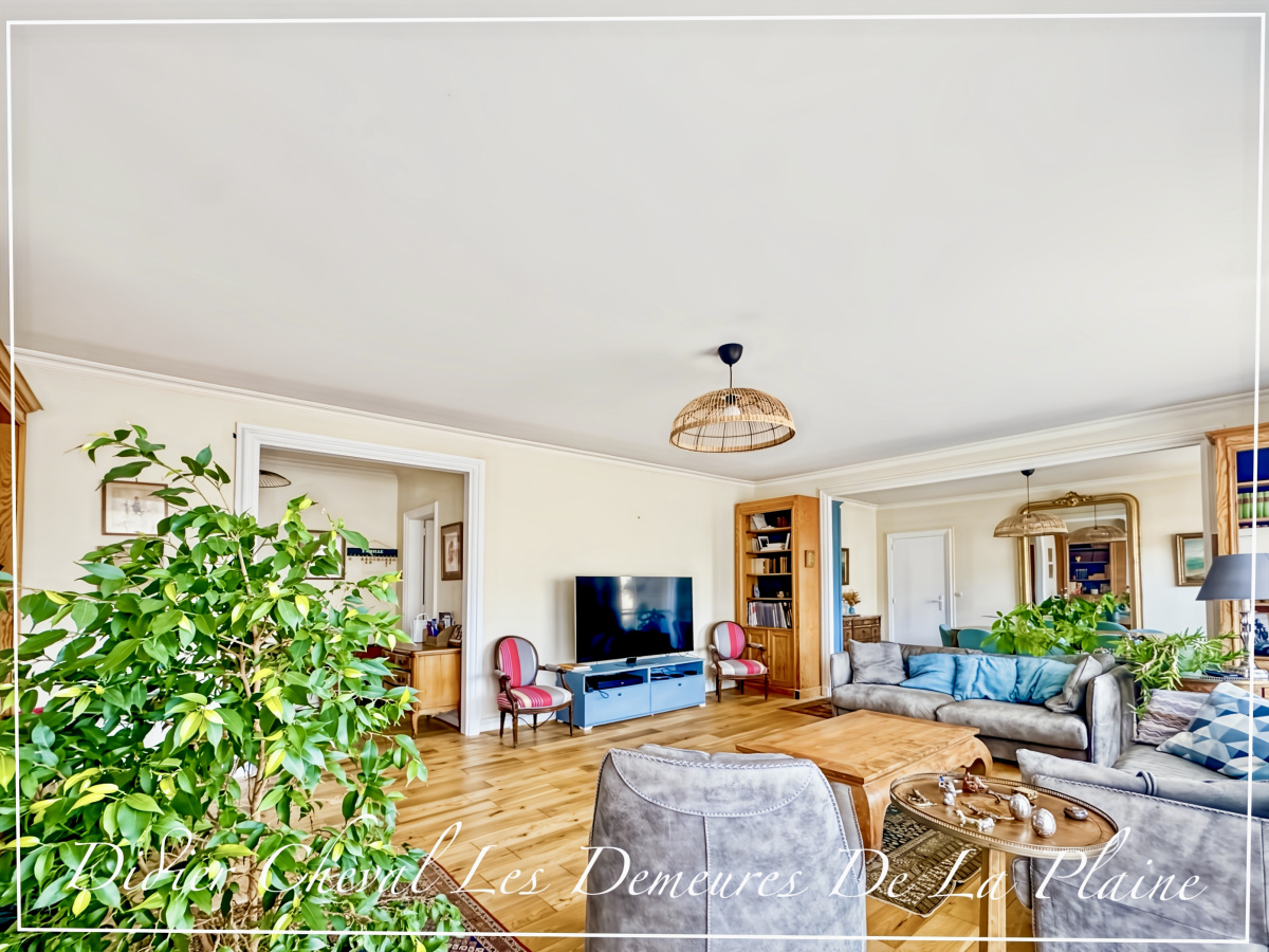Il se compose d’une grande entrée, d’un séjour/salle à manger avec cheminée de 47,11 m² donnant sur un balcon de 14 m² exposé sud-ouest, d’une cuisine équipée, d’un dégagement avec placards desservant quatre chambres (13,34/13,20/13,28/11,95 m²), d’un WC séparé, d’une salle de bains avec WC, d’une salle d’eau avec WC et d’une cave.