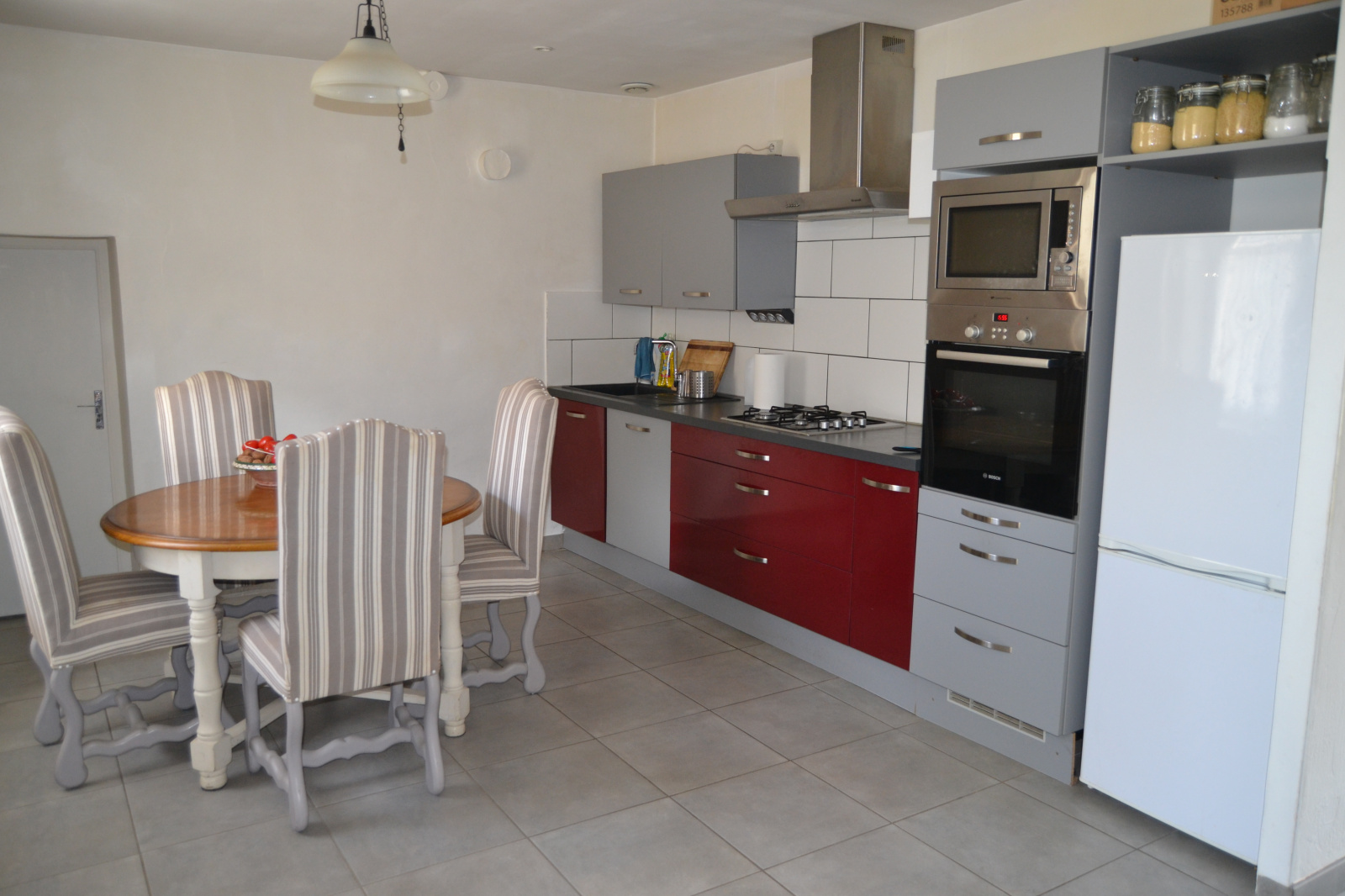 avec espace cuisine aménagé et équipé. Cheminée en granit rénovée avec insert Aasgard.