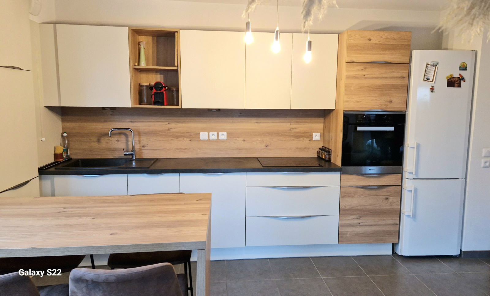 1 vasque, sèche serviettes, douche à l'italienne