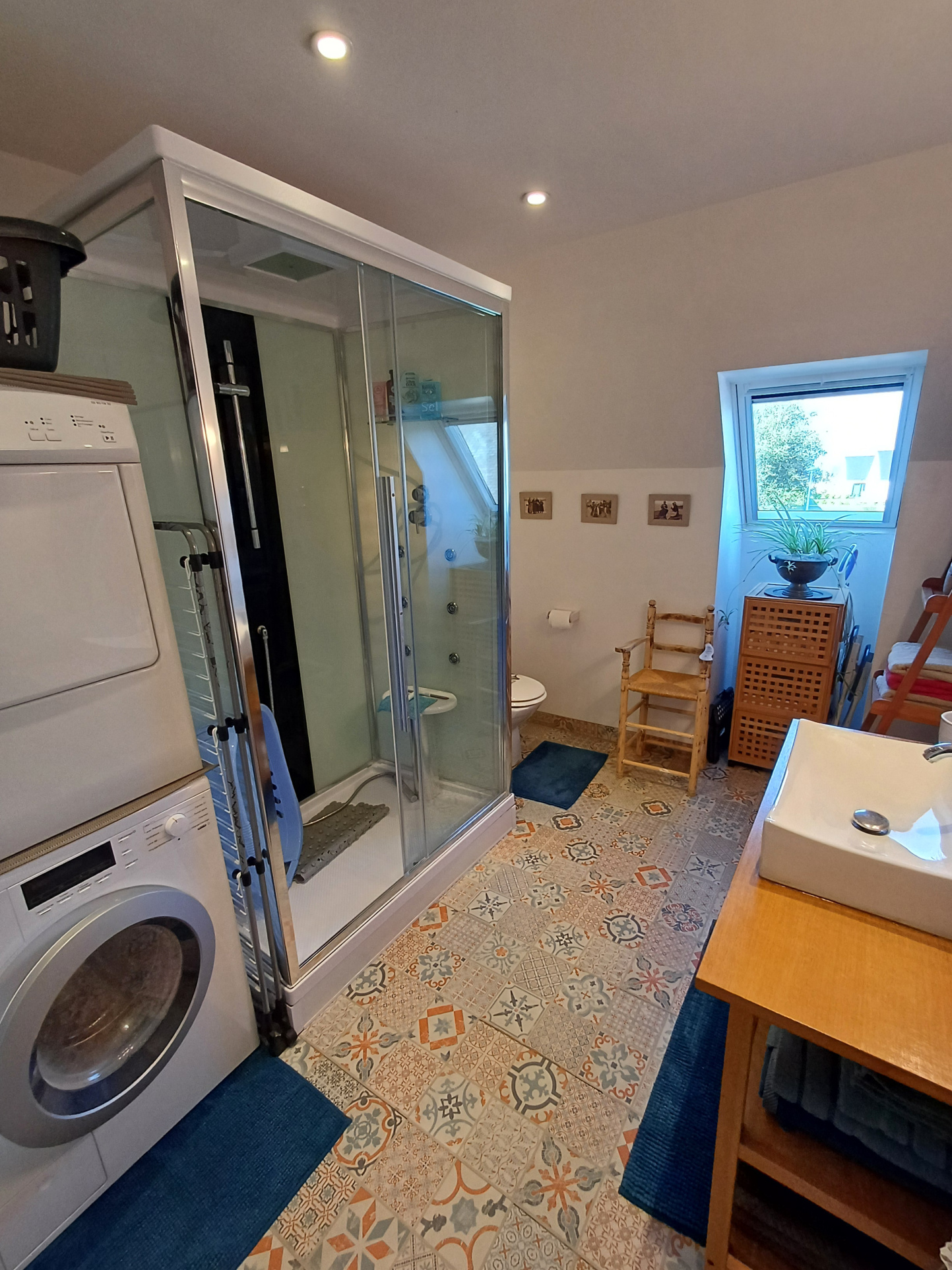 Remarquable luminosité sud ouest pour ce bel appartement T4 situé au premier étage d'un petit collectif du centre bourg de Plougasnou.