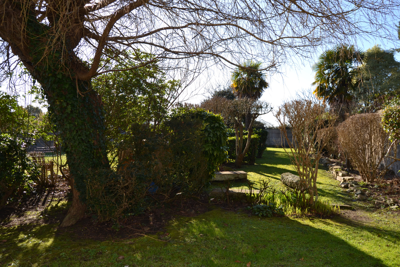 Le grand jardin arboré et clos de murs s'étale au sud de la maison, un espace de stationnement privé est disponible sur le coté Est de la maison.