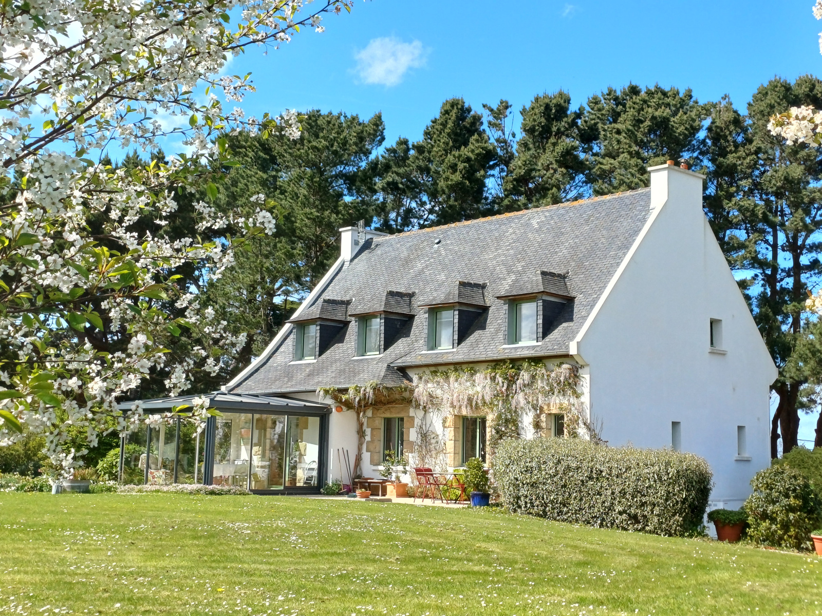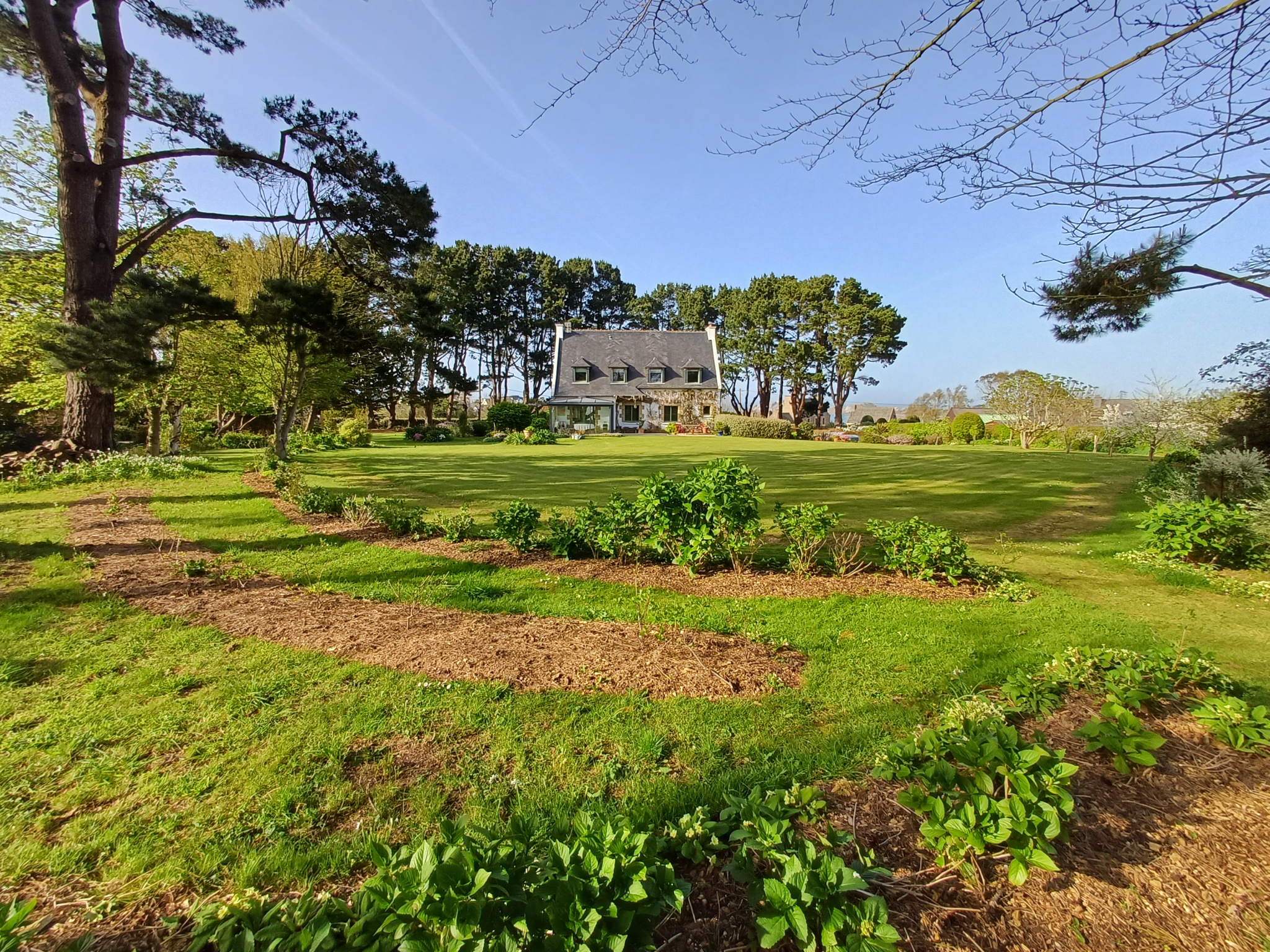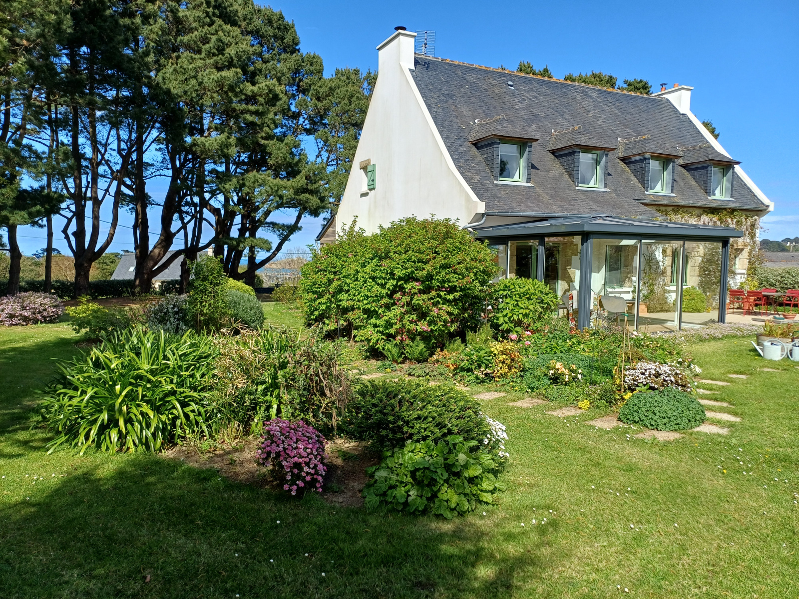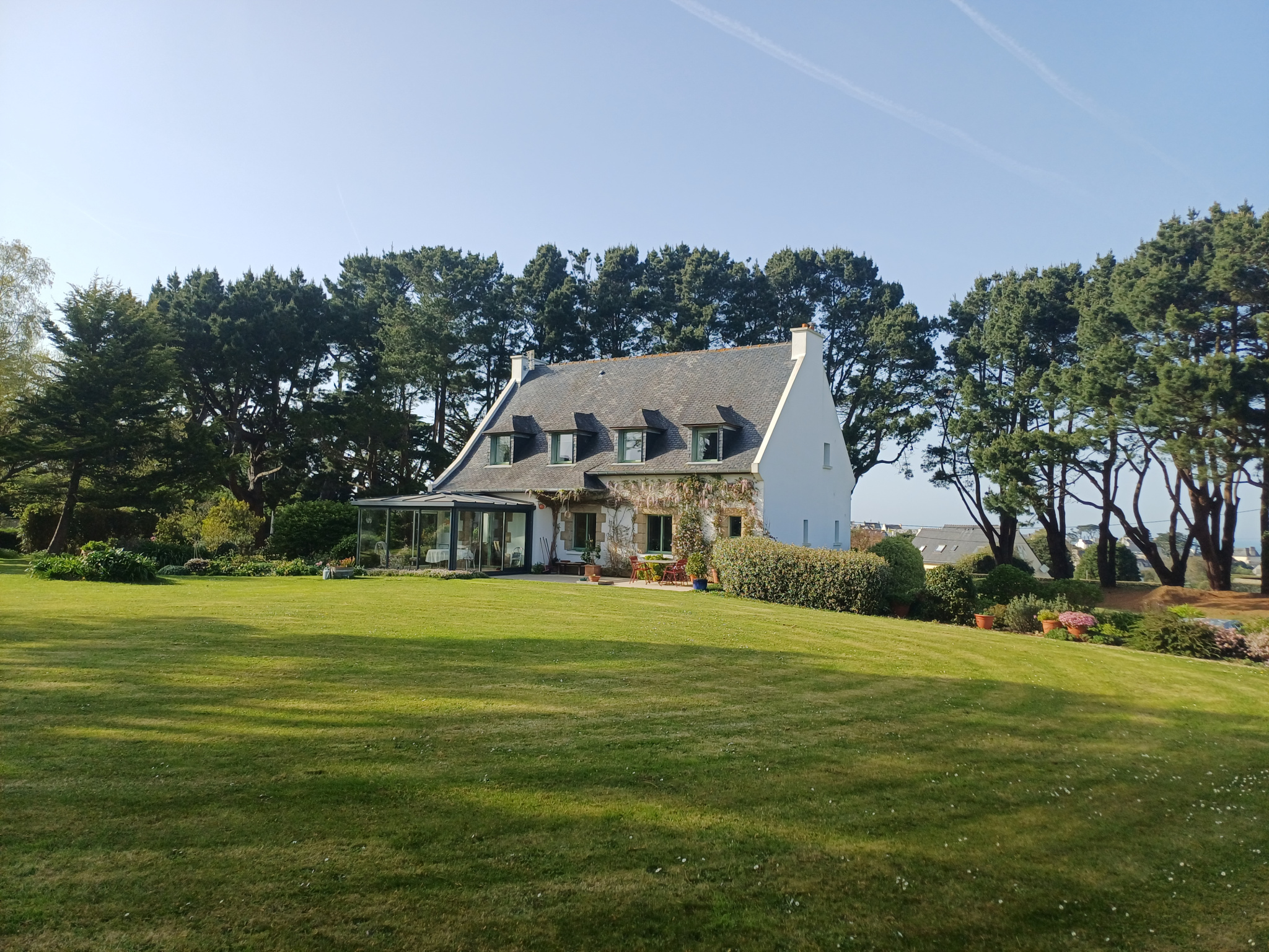 Lumineuse exposition sud et vue mer sur la pointe de Primel pour cette grande maison entièrement rénovée et implantée au milieu d'un parc arboré et paysagé de 5400 m2.