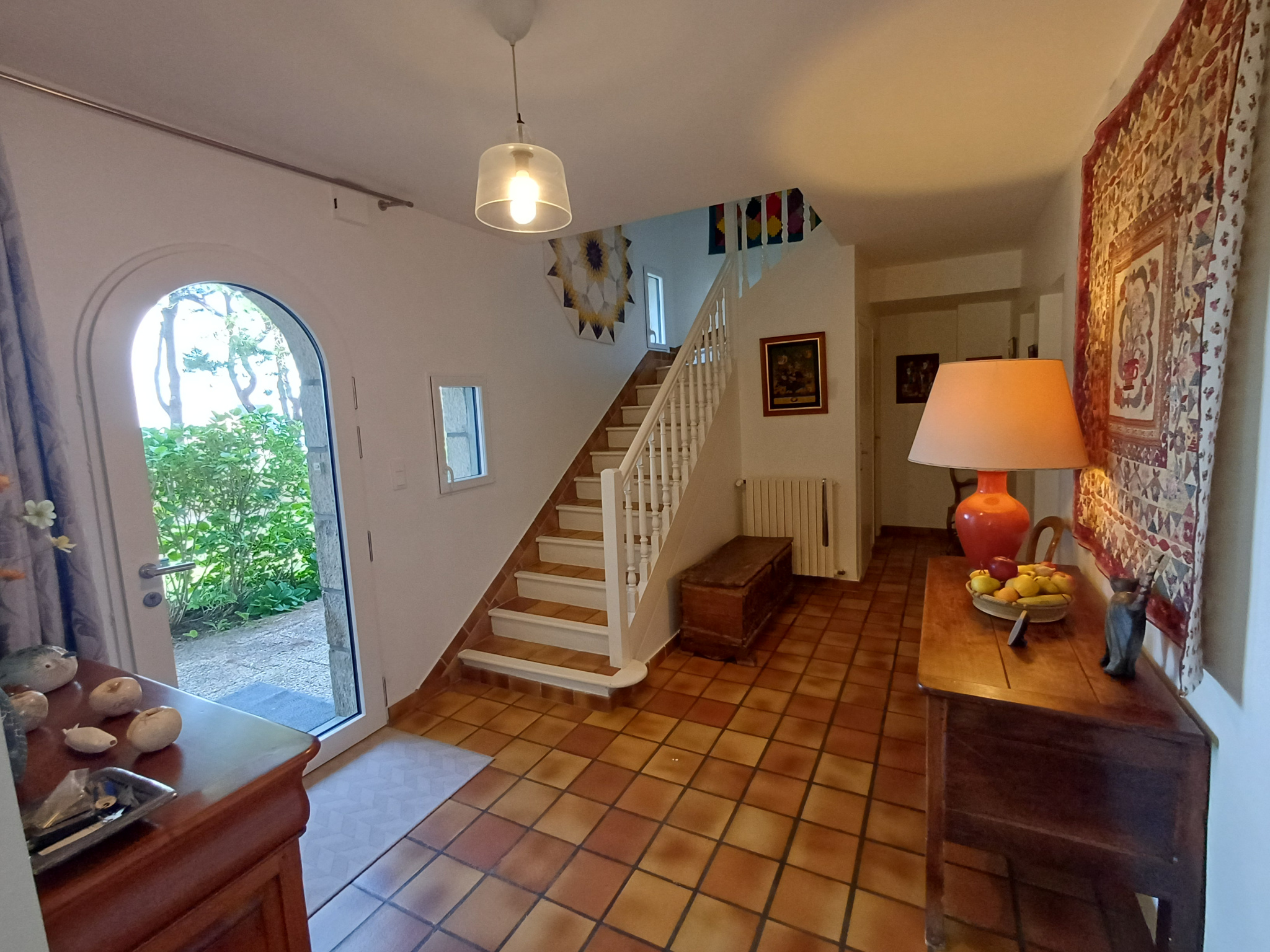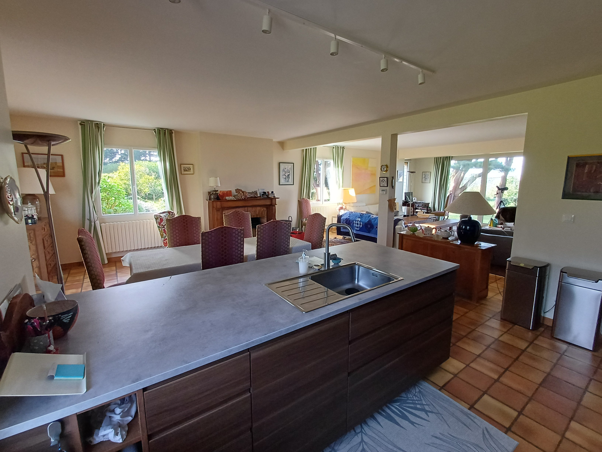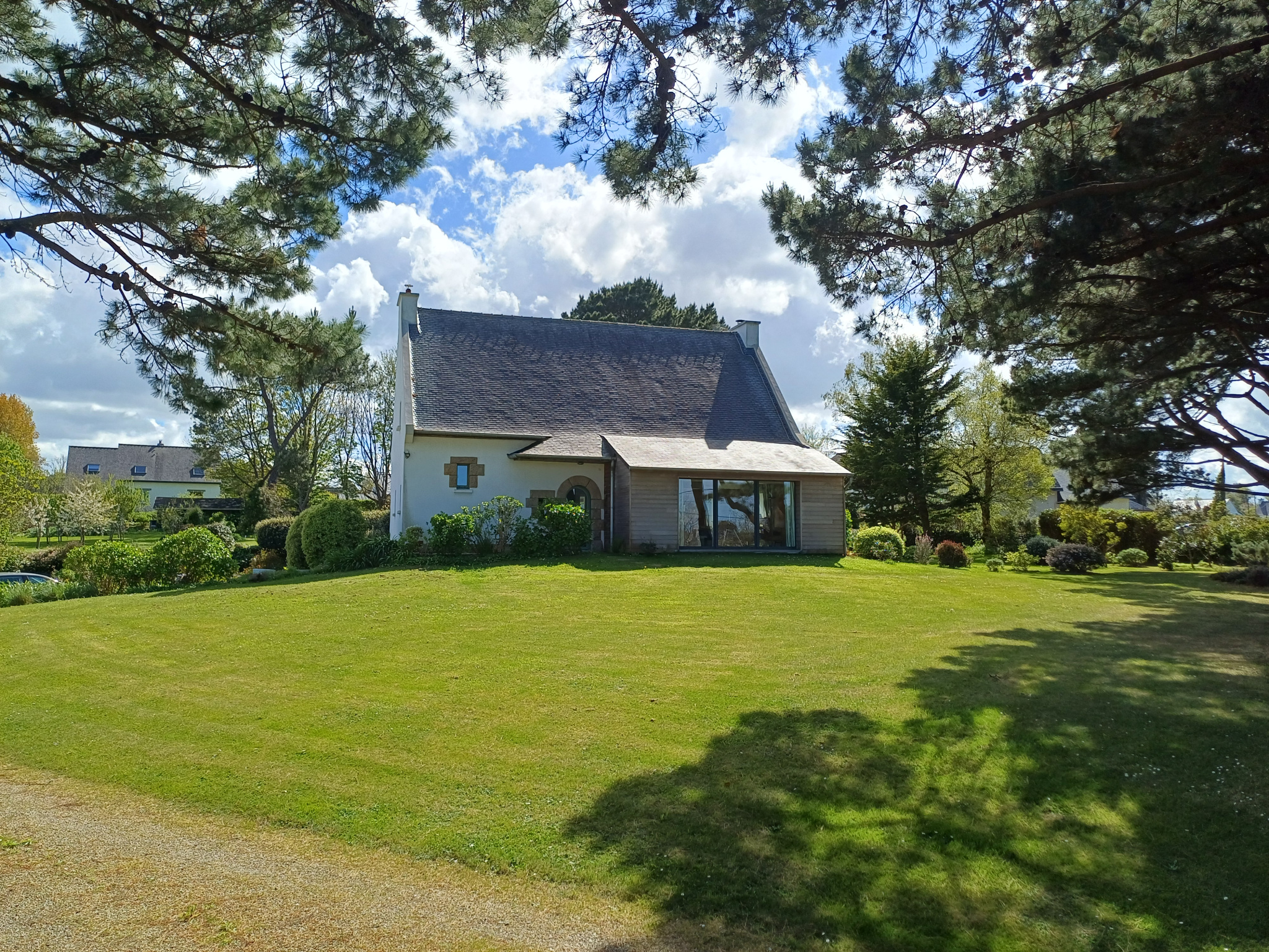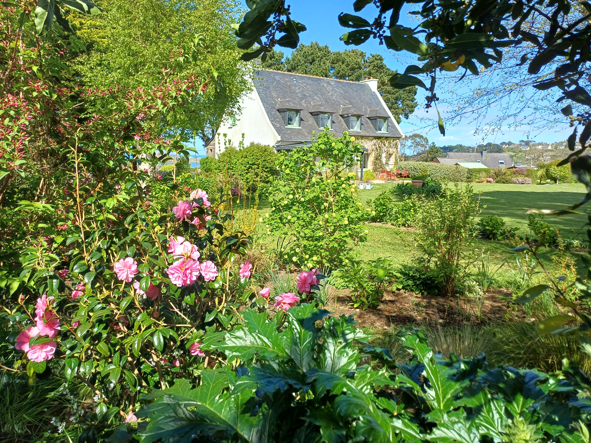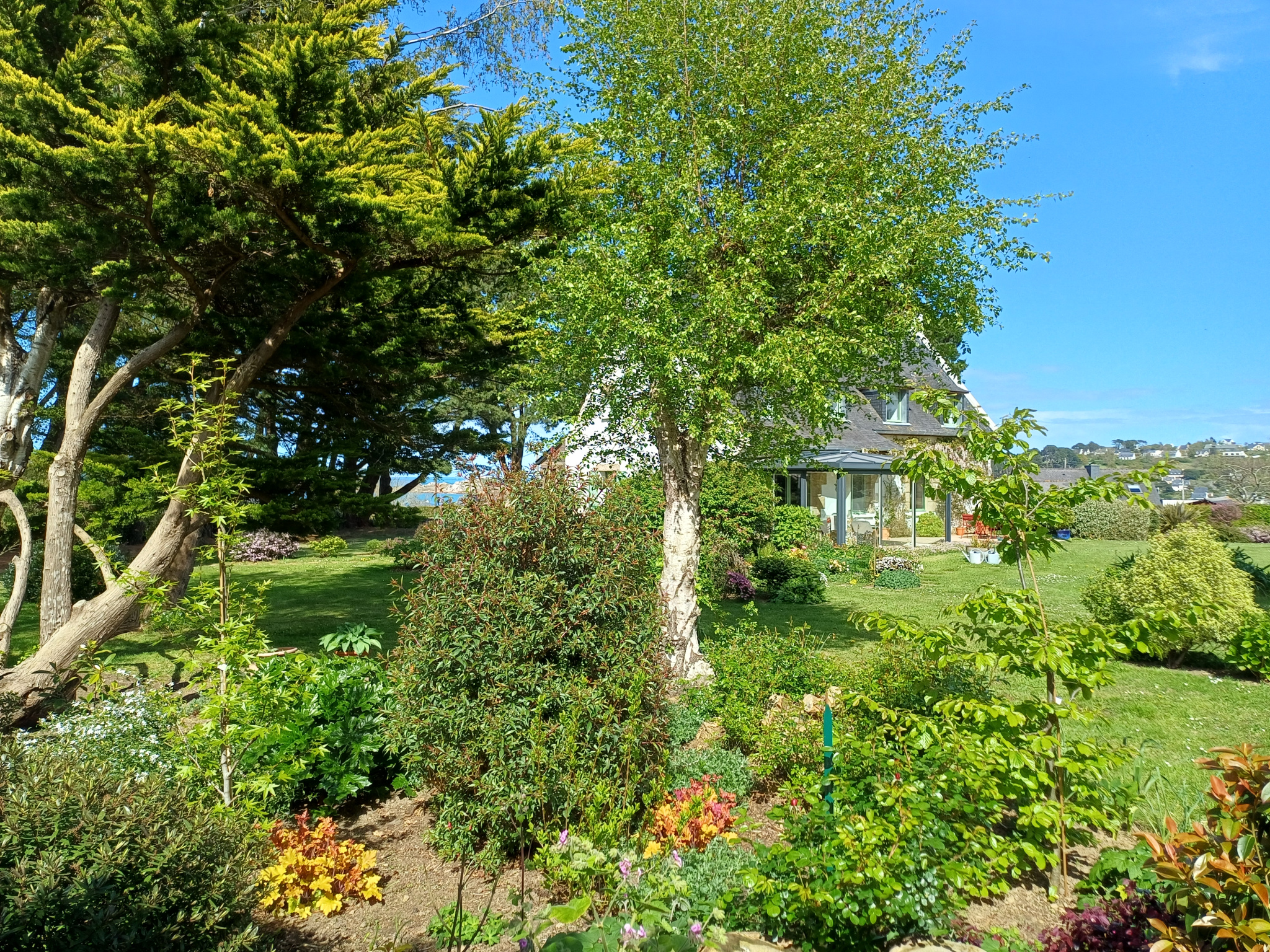 Lumineuse exposition sud et vue mer sur la pointe de Primel pour cette grande maison entièrement rénovée et implantée au milieu d'un parc arboré et paysagé de 5400 m2.