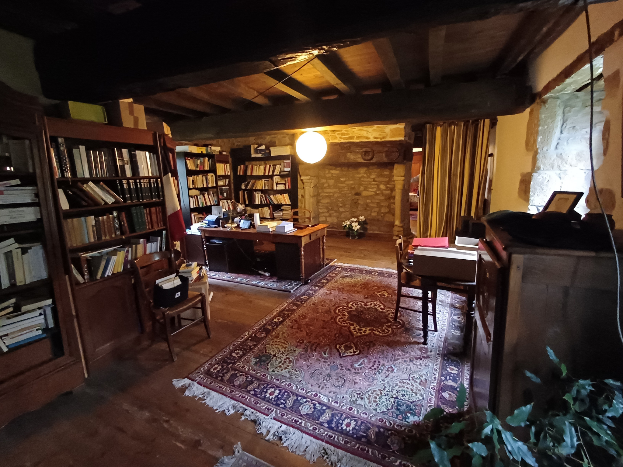 A l'étage, grand bureau bibliothéque avec une belle cheminée en bois sculptée, deux chambres et une salle de bains. Au deuxième étage, quatre chambres.