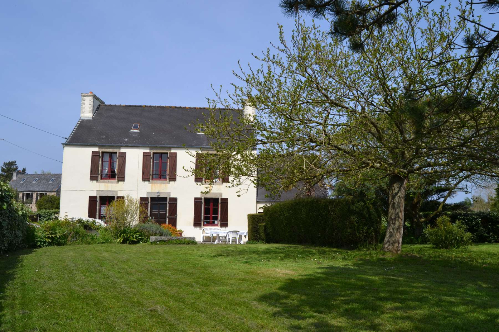 Plougasnou, entre le bourg et Terenez, maison bretonne en pierre, 4 ch sur 1900 m2 de terrain. A 5 mn de la plage du Guerzit et du GR34, cette maison bretonne typique vous propose au rez de chaussée, entrée, cuisine équipée et aménagée, séjour, salle d'eau récente et wc indépendant . Au premier étage, deux grandes chambres et un bureau. Au deuxième étage, deux chambres mansardées.Une buanderie chaufferie attenante et un garage attenant. Le jardin paysagé et arboré de 1900 m2 environ s'étale au sud et à l'est de la maison. Belle luminosité sud sans vis à vis, vous bénéficiez du charme de la campagne et de la proximité de la mer et des plages.