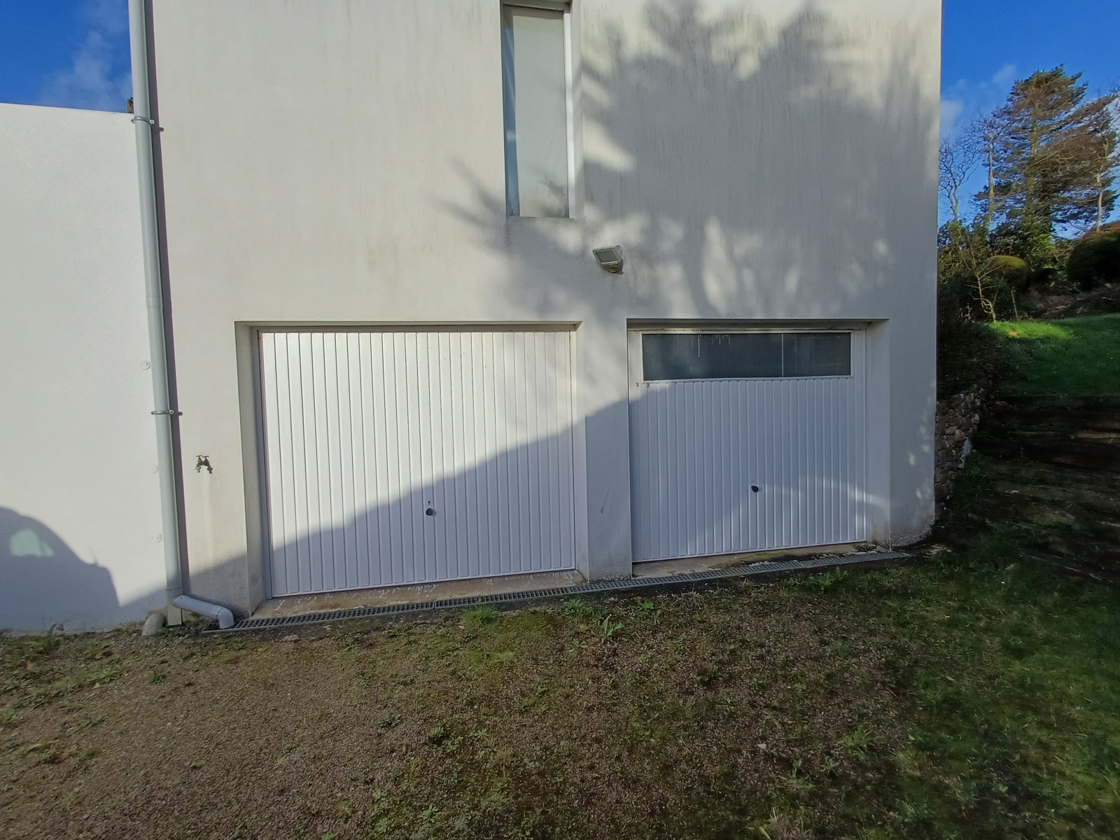 En rez de jardin, deux chambres donnant directement sur le jardin, une salle de bains, un wc indépendant, une buanderie et un double garage avec deux portes d'accès.