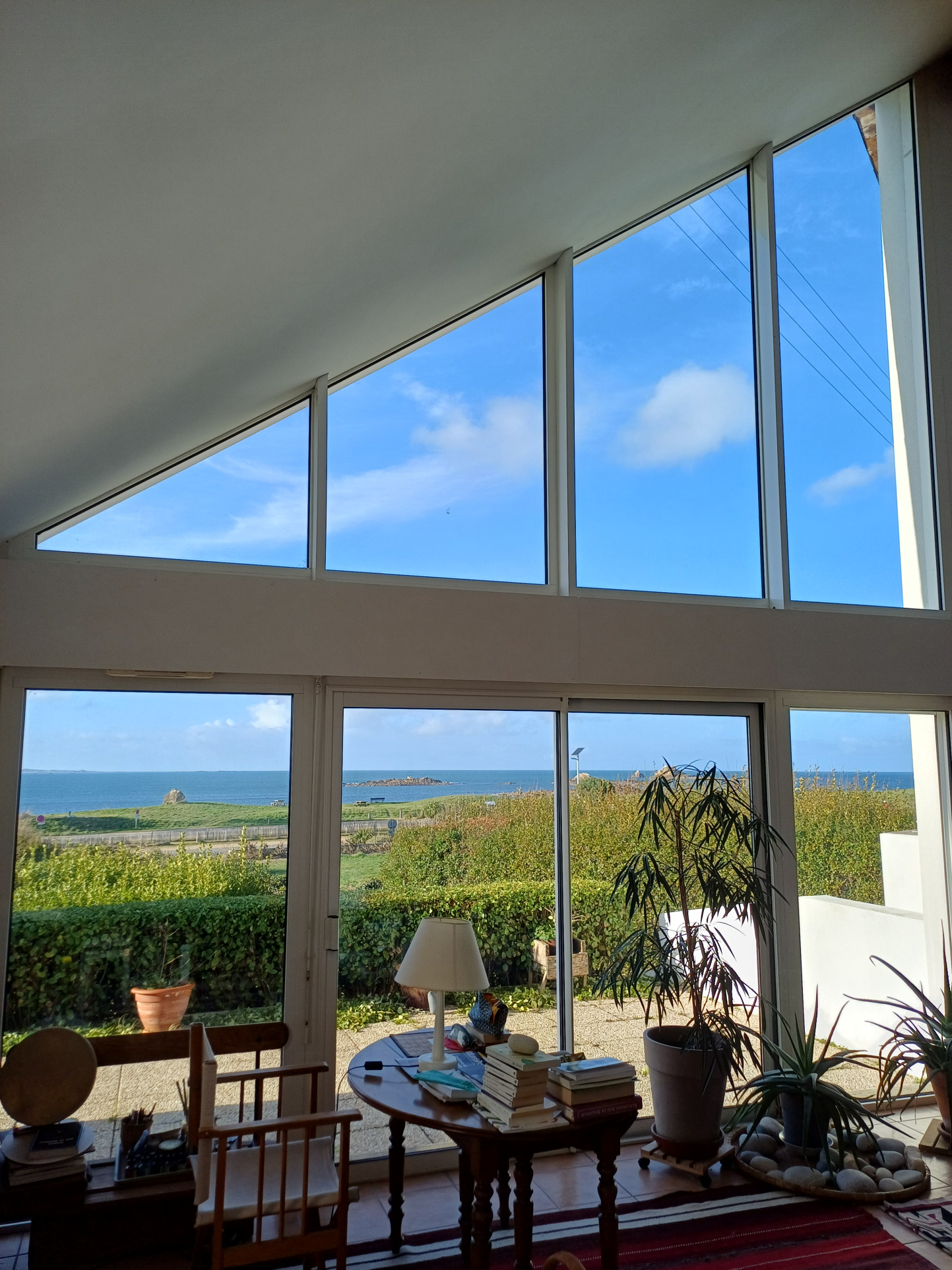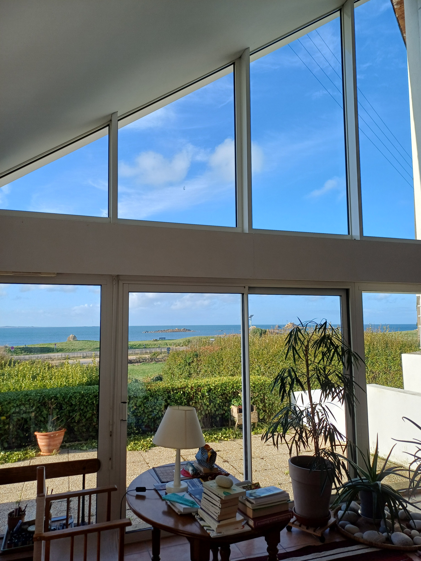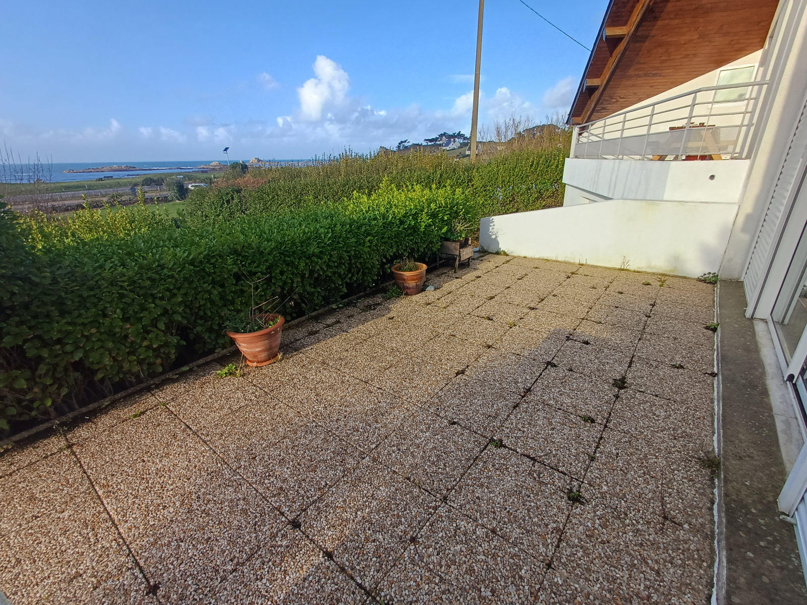 cheminée et terrasse pleine vue mer Ouest.