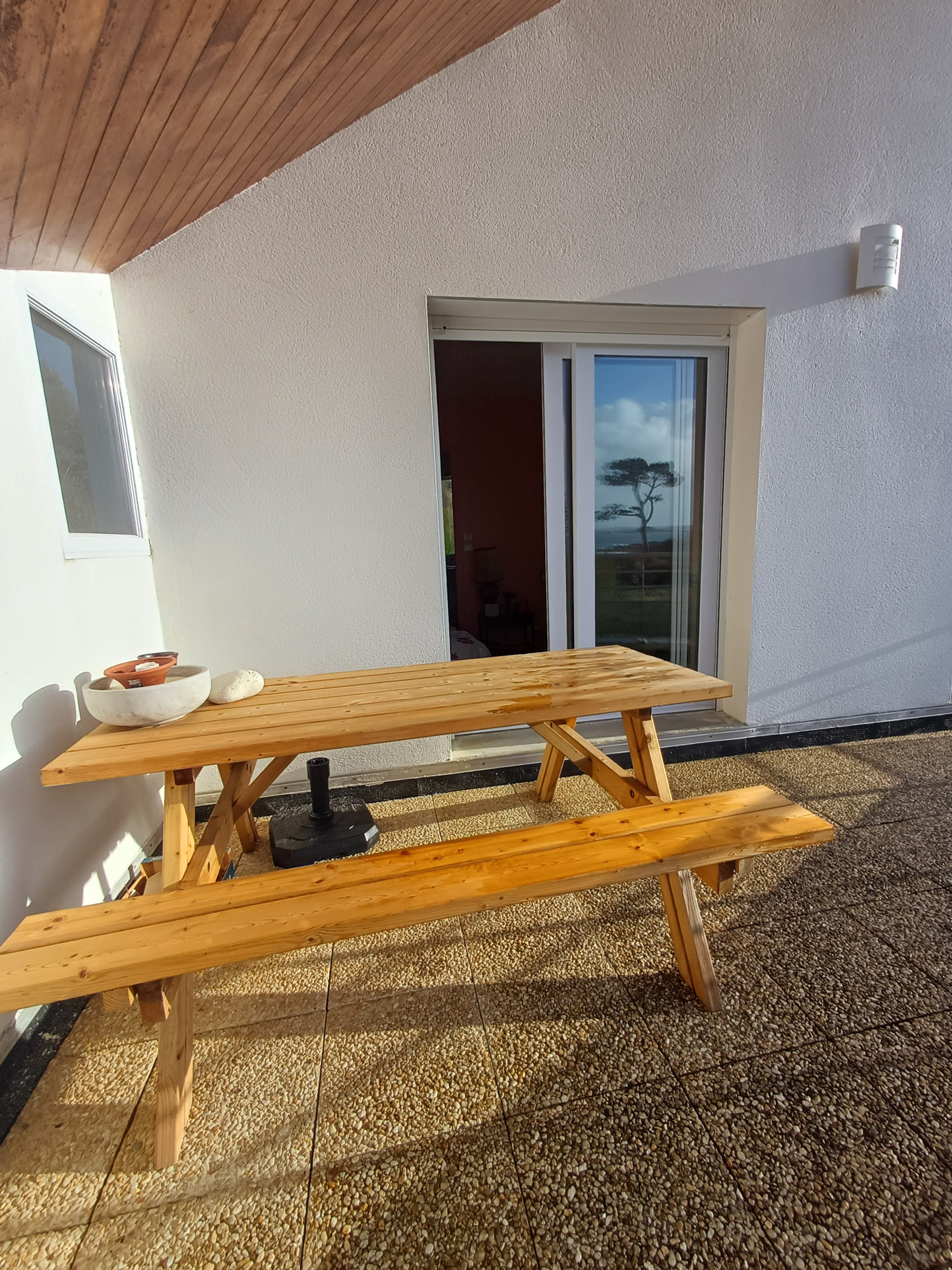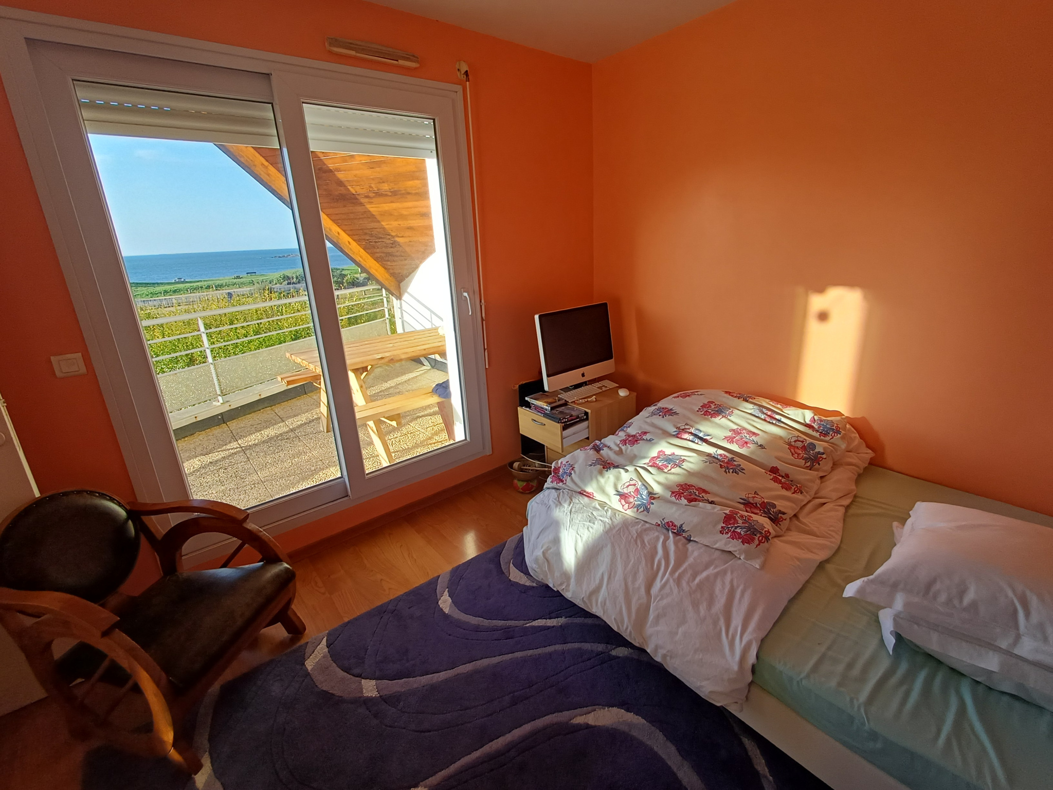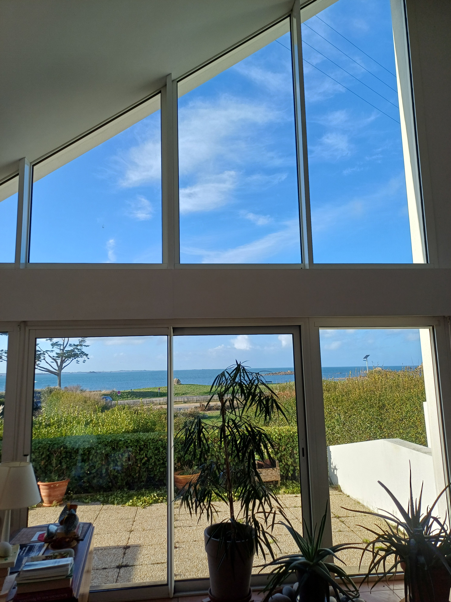 cheminée et terrasse pleine vue mer Ouest.