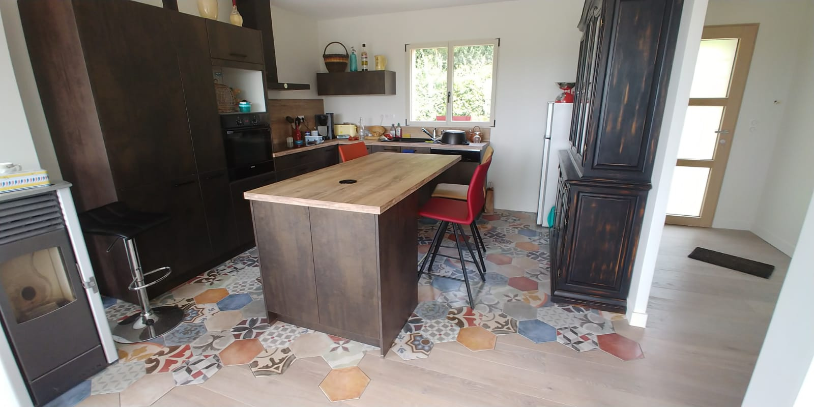 avec poêle à pellet.