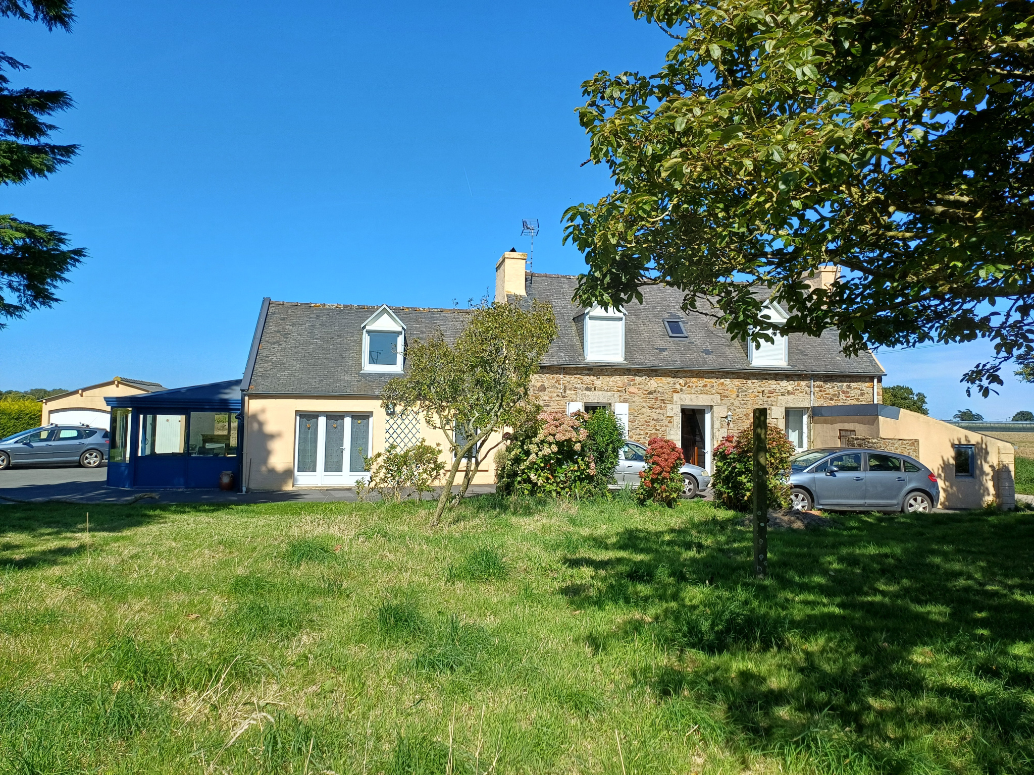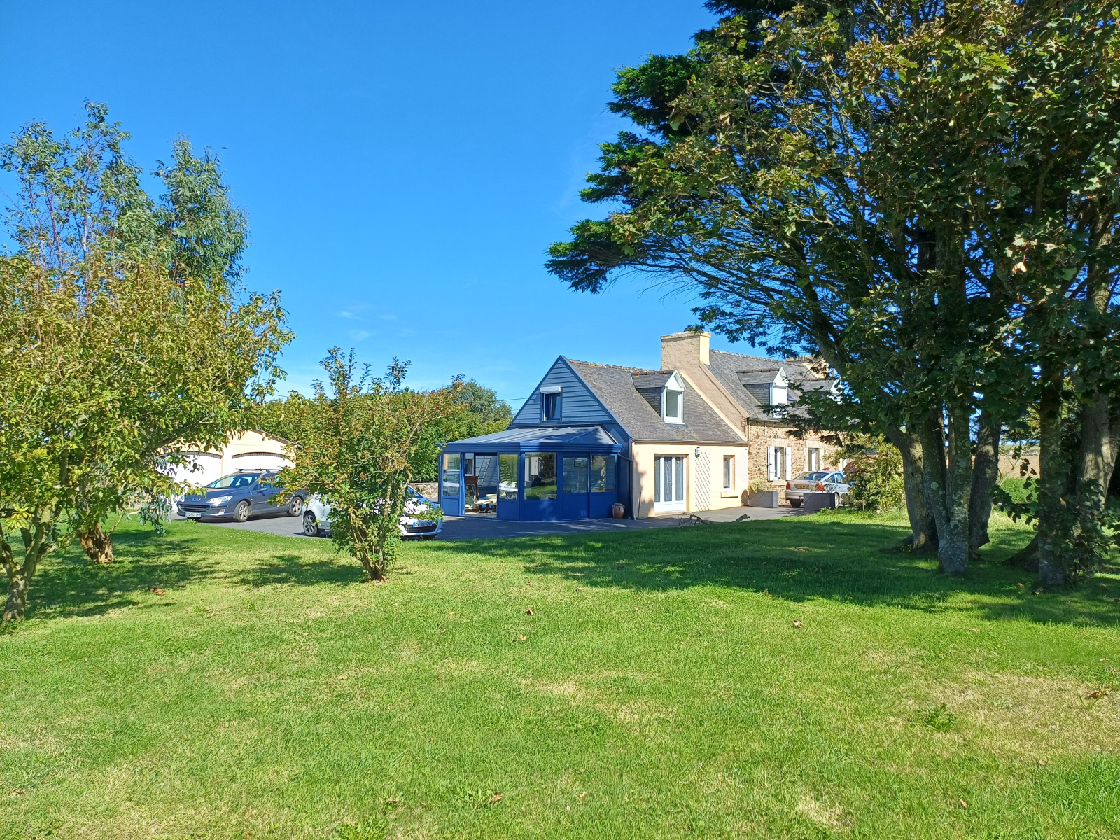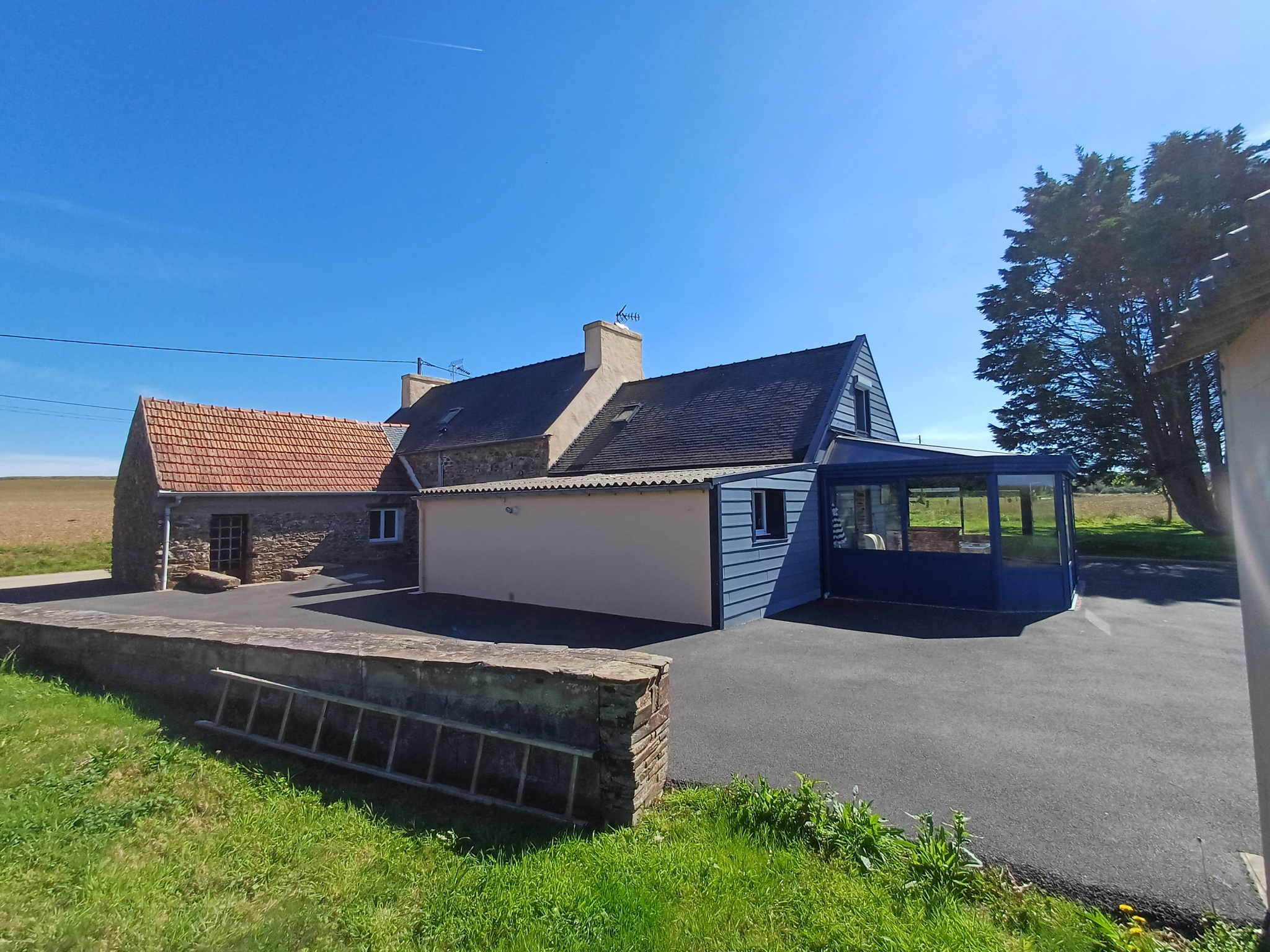 St Jean du Doigt, propriété comprenant deux maisons, double garage et atelier sur 1986 m2 de terrain. Belle et lunineuse exposition sud ouest sans vis à vis pour cet ensemble immobilier. La première maison comprend une belle pièce de vie augmentée d'une véranda accédant directement à l'extérieur. Cuisine, salle deau et wc au rez de chaussée. Une grande chambre à l'étage avec un cabinet de toilette.