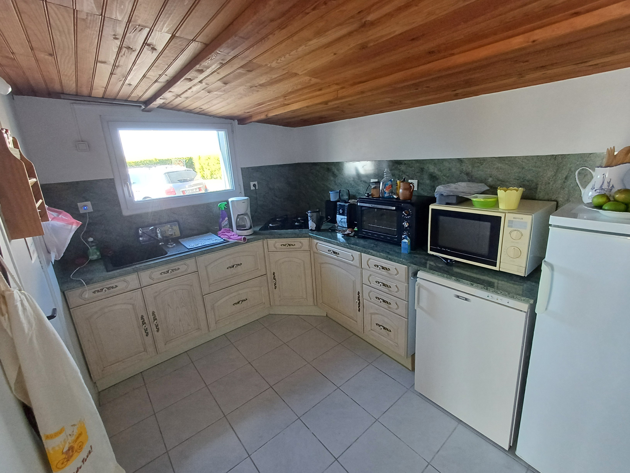 La deuxième maison comprend, une cuisine, un séjour et une salle de bains avec wc au rez de chaussée. Deux belles chambres à l'étage et un wc indépendant avec lave mains.