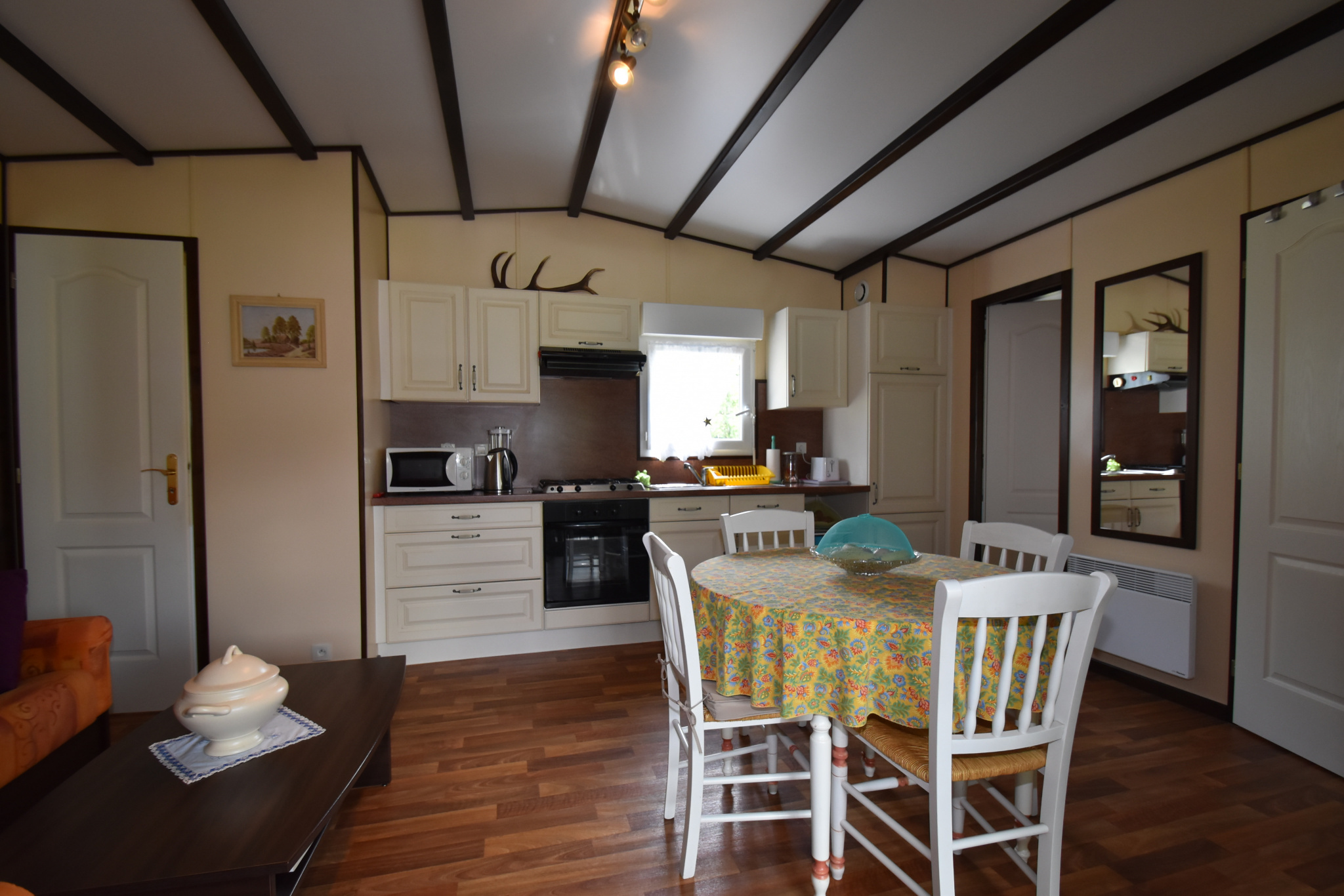 Il est composé d'une pièce principale avec cuisine aménagée et équipée, de deux chambres, une salle de douches et d'un wc indépendant. Vous accueillerez ainsi 4 personnes voir 6, grâce à sa banquette-lit.