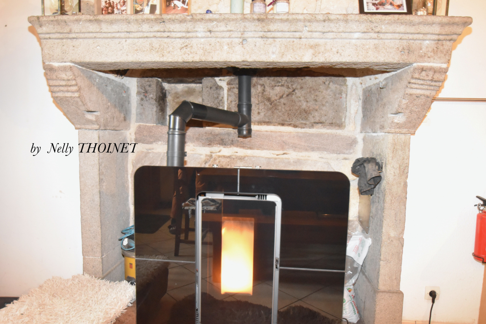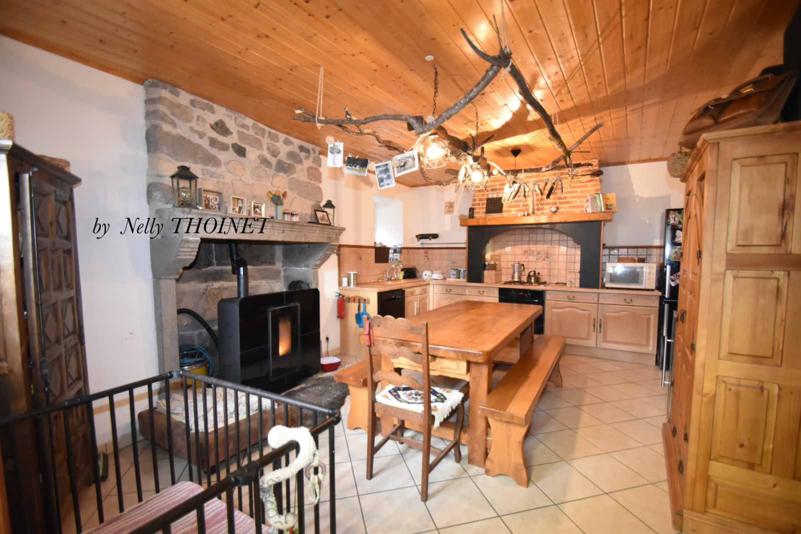 cuisine aménagée, poêle à granulés