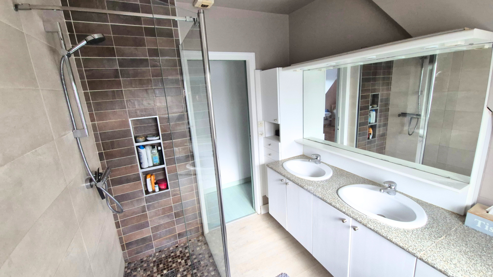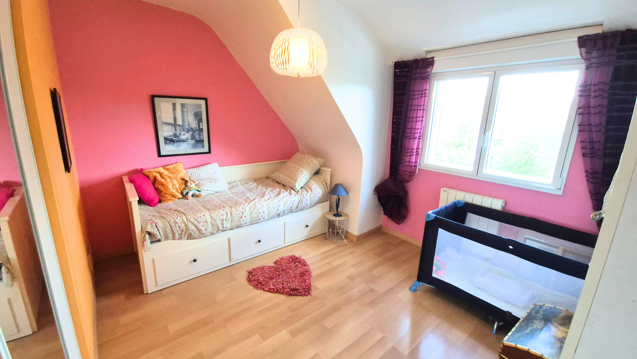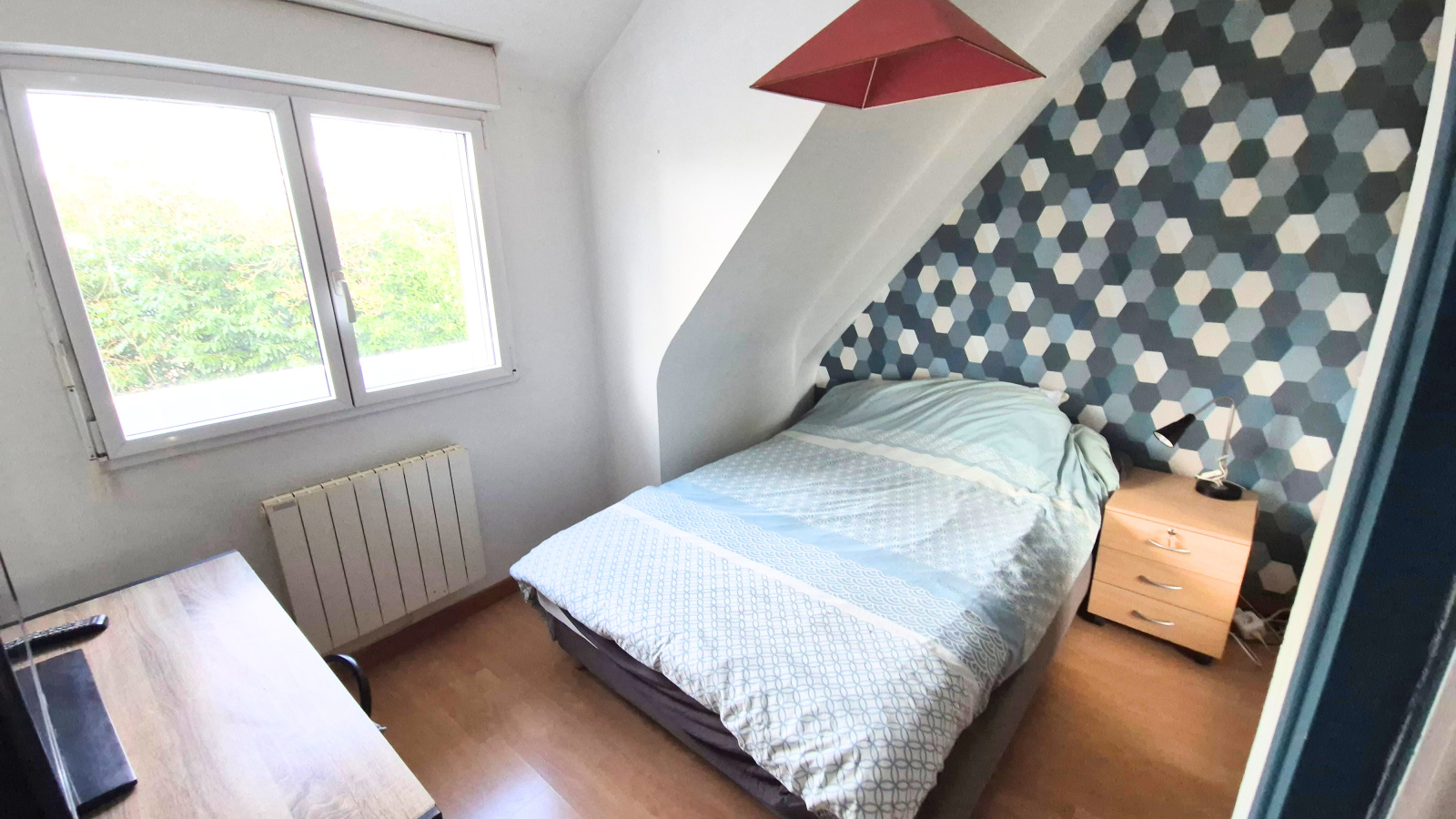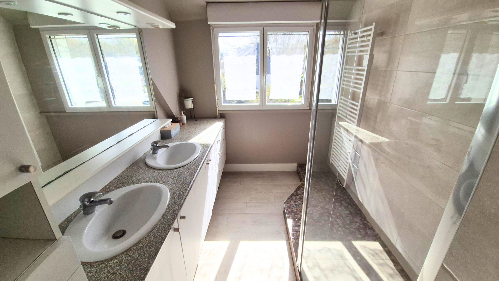 A l'étage, un palier dessert une salle d'eau moderne et trois chambres spacieuses.